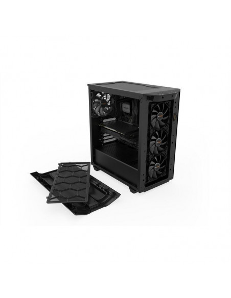 A caixa PC be quiet! Pure Base 500DX Negra é uma caixa midi-tower com painel lateral em vidro temperado, iluminação ARGB frontal e três ventoinhas de 140 mm. Oferece excelente fluxo de ar e espaço para componentes de alta performance.