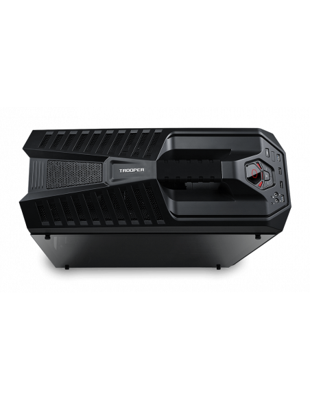 Arme-se com a Trooper SE e crie a sua própria experiência de jogo! A lateral é composta por vidro temperado cinza claro de ponta a ponta O painel oferece uma visão clara da sua estação de batalha. Dois slots PCI adicionais na parte traseira oferecem a opção de mostrar a sua placa gráfica numa posição vertical. Torne o seu sistema ainda mais excepcional, montando até 4 SSD em posição vertical também.