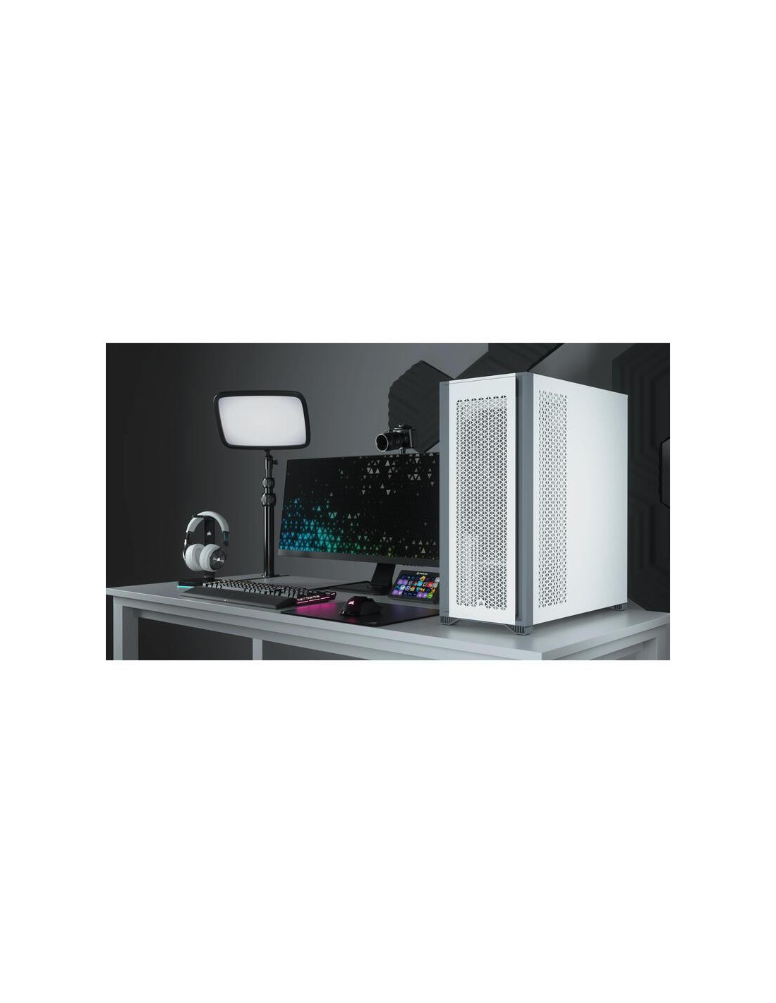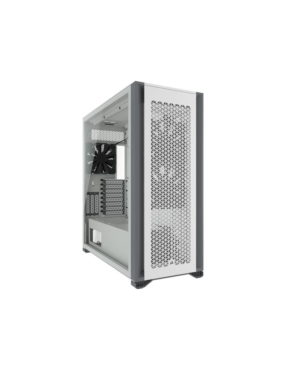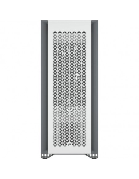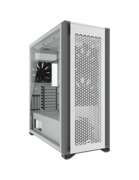 Caixa Corsair 7000D Airflow Full Tower com painel lateral em vidro temperado branco. Design otimizado para fluxo de ar e compatibilidade com componentes de alta performance.
