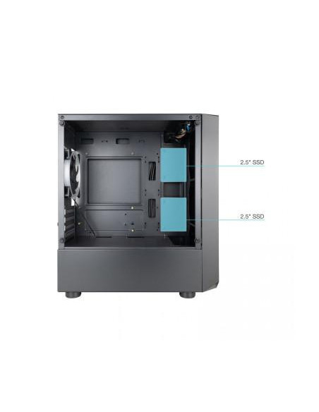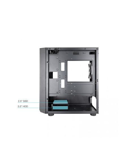 A caixa mini-torre Tooq Seizure TQGCC901-B é uma solução ideal para quem procura uma caixa gaming compacta, mas com espaço e opções de personalização para construir um PC de alta performance. O seu design elegante e moderno em preto, com painel lateral em vidro temperado, permite exibir os componentes internos com iluminação ARGB.  Compatibilidade com placas-mãe Micro-ATX e Mini-ITX garante flexibilidade na escolha de componentes. O sistema de refrigeração é um ponto forte, com três ventoinhas ARGB de 120 mm na parte frontal e uma na traseira já incluídas, proporcionando um fluxo de ar eficiente.  Existem ainda dois espaços para ventoinhas adicionais de 120 mm no topo, permitindo ainda mais refrigeração.  A caixa também suporta sistemas de refrigeração líquida de 240 mm na parte superior e 120 mm na traseira, assegurando a refrigeração mesmo dos componentes mais exigentes.  Com espaço suficiente para placas gráficas de até 310 mm e dissipadores de CPU de até 159 mm de altura, pode construir um sistema com componentes de alta performance.  O painel frontal inclui convenientemente portas USB 3.0 e 2.0, bem como conectores de áudio HD para fácil acesso.  No interior, dispõe de duas baias de 3,5? e três de 2.5?, para unidades de armazenamento.  Um filtro anti-pó no topo ajuda a manter o interior limpo.  Em suma, a Tooq Seizure TQGCC901-B é uma excelente opção para quem procura uma caixa gaming compacta, elegante e altamente funcional.