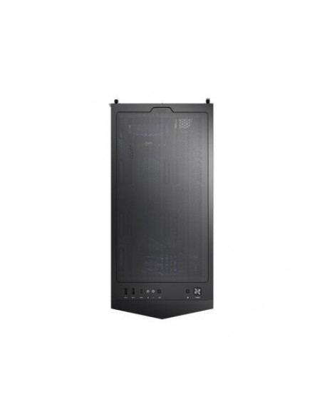 Com três ventoinhas de 120 mm pré-instaladas na parte frontal e uma de 120 mm na traseira, o fluxo de ar é garantido. Há espaço para mais três na parte superior e uma na parte inferior, todas com possibilidade de iluminação ARGB (Addressable RGB) personalizável. O painel frontal proporciona fácil acesso a duas portas USB 3.2 Gen 1, uma porta USB 3.2 Gen 2 Tipo-C, entradas de áudio e saídas de áudio, facilitando a ligação de periféricos.