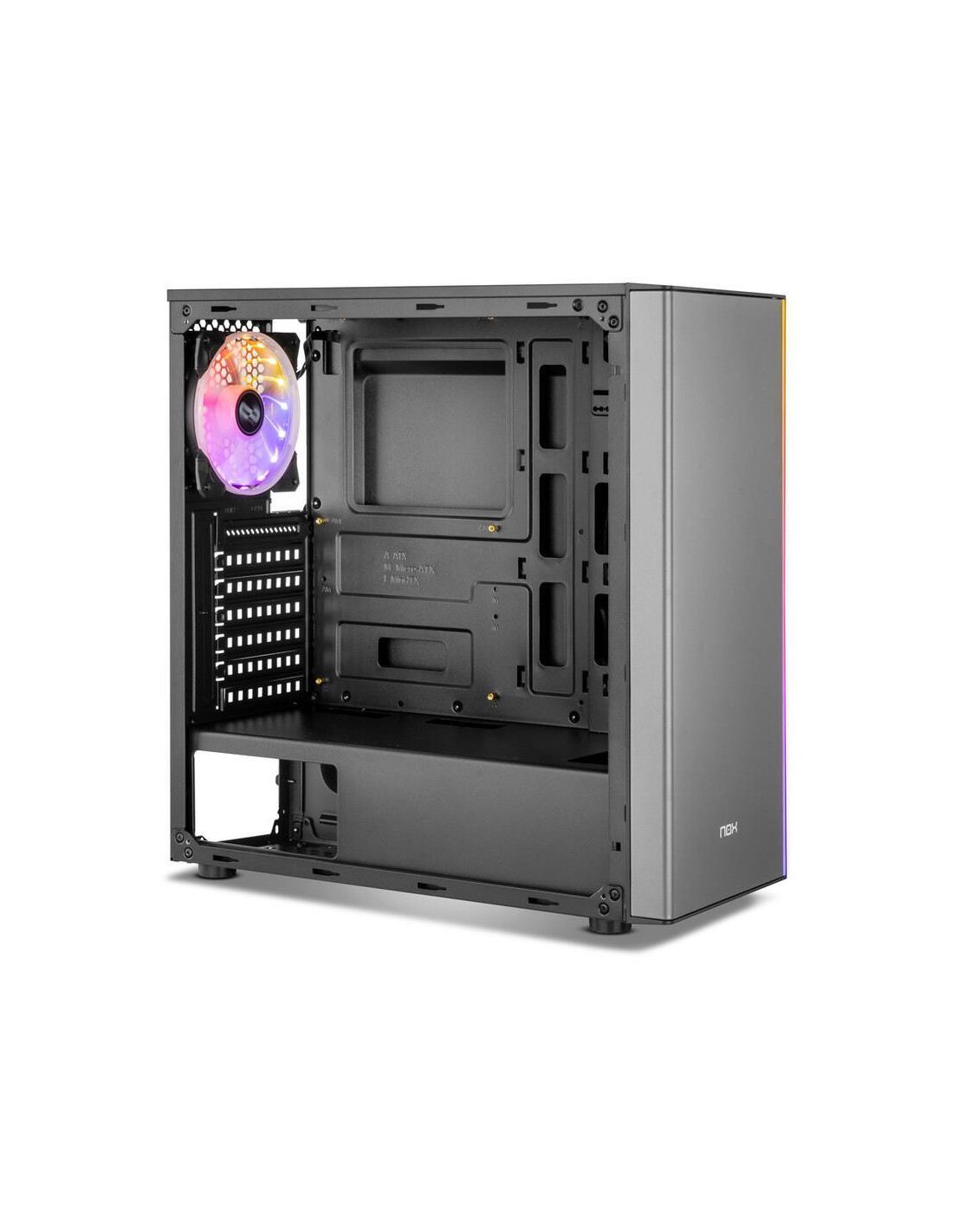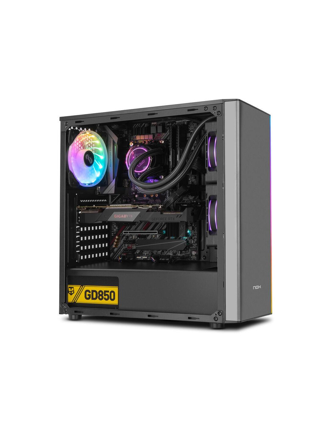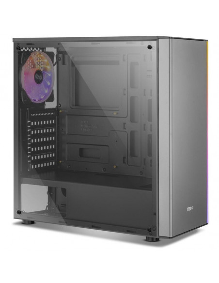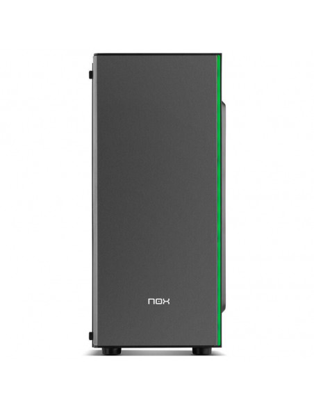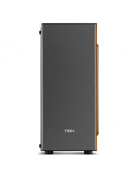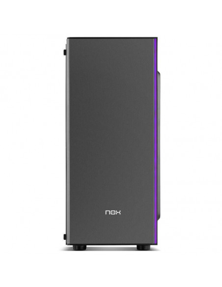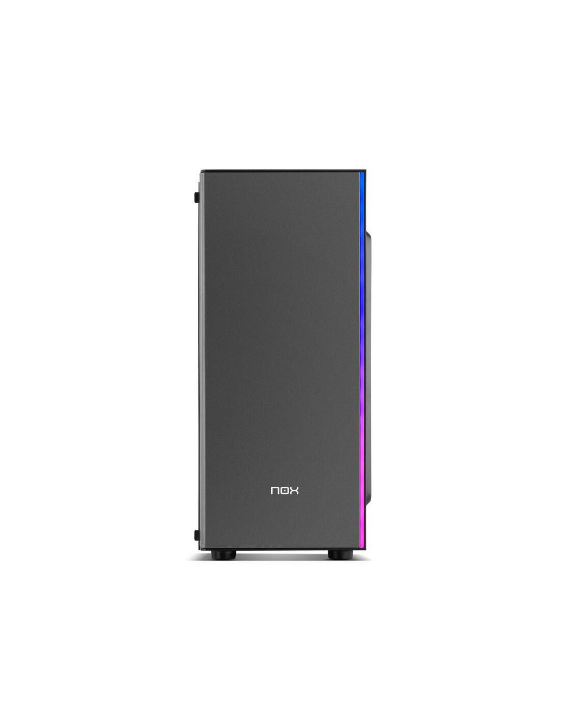 No painel superior, encontra-se uma interface prática e acessível com dois portas USB 2.0, uma porta USB 3.0 de alta velocidade para transferências rápidas e as ligações de áudio padrão. Um controlador integrado permite controlar facilmente a iluminação RGB do painel frontal e do ventilador traseiro incluído. Detalhes como estes demonstram a atenção da Nox aos pormenores e à usabilidade.