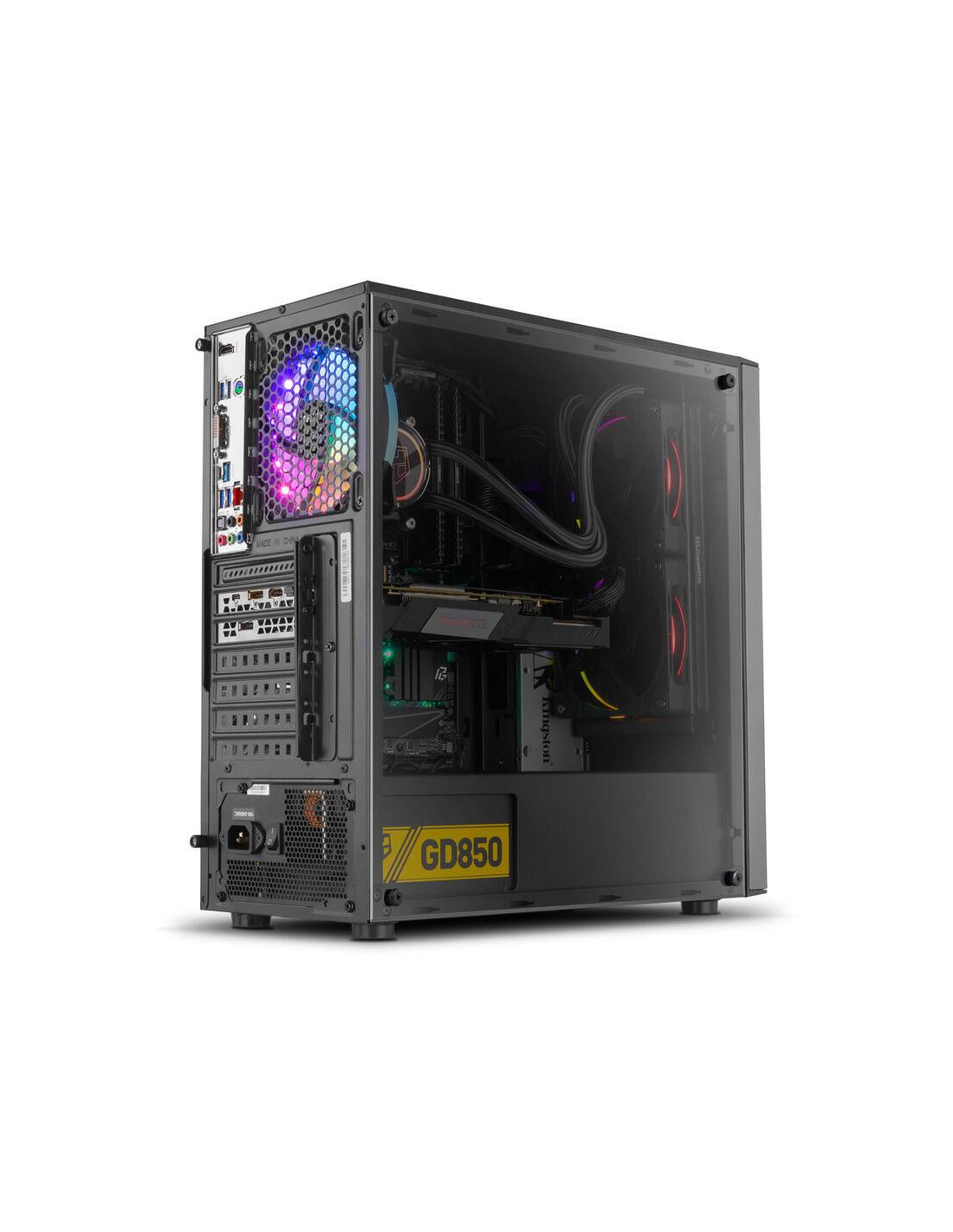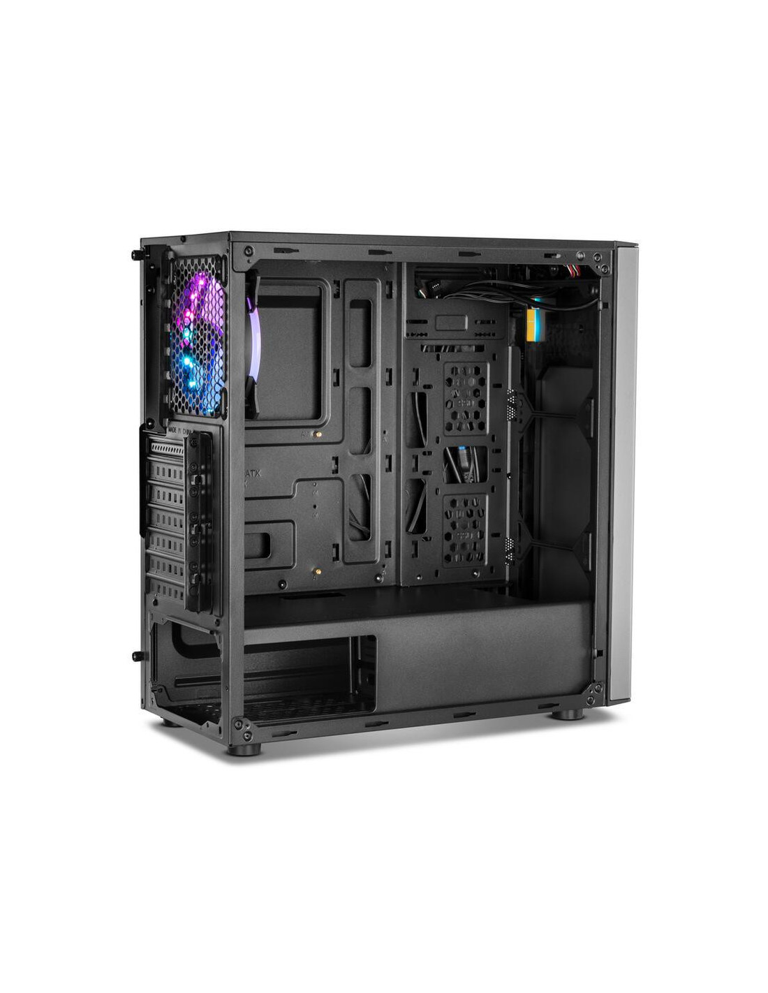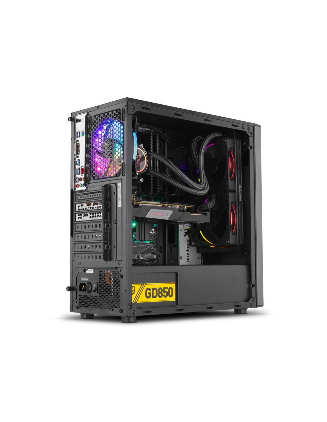 A refrigeração eficiente é garantida pelas diversas opções de instalação. O design permite montar até três ventiladores de 120 mm no painel frontal (não incluídos), juntamente com o ventilador RGB de 120 mm pré-instalado na parte traseira. A caixa também suporta sistemas de refrigeração líquida de 120 mm na parte traseira e de 240 mm na parte frontal, assegurando a manutenção da temperatura ideal dos componentes, mesmo em sessões de utilização intensivas.