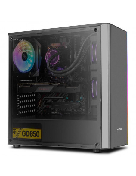A Nox Hummer Infinity Omega é uma semitorre que combina design minimalista com funcionalidades práticas para entusiastas de PCs. O seu aspeto discreto, com detalhes cuidadosamente elaborados, confere-lhe uma forte personalidade, ideal para quem procura uma solução elegante e eficiente para o seu sistema.