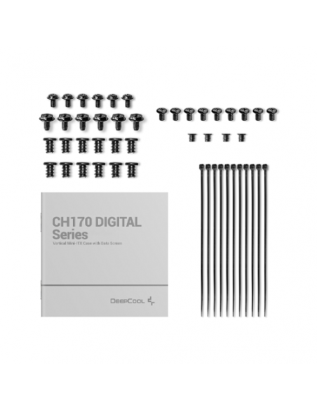 A caixa Deepcool CH170 Digital Black é uma opção compacta e elegante para quem procura construir um PC Mini-ITX de alto desempenho. O seu design moderno e a janela lateral em acrílico permitem exibir os componentes internos, enquanto a construção robusta garante a proteção dos seus componentes.  A caixa suporta placas-mãe Mini-ITX e oferece diversas opções de montagem para unidades de armazenamento, placas gráficas e sistemas de arrefecimento. Com espaço para dissipadores de CPU de até 172mm e placas gráficas de até 305mm, esta caixa permite a construção de sistemas poderosos e personalizáveis. O chassis possui uma série de portas USB na parte frontal para facilitar a conexão periféricos. A ausência de fonte de alimentação incluída exige a compra separada de uma fonte de alimentação ATX compatível.