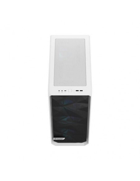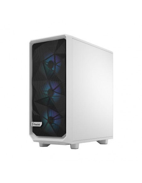 A Fractal Design Meshify 2 Compact RGB é uma caixa de computador compacta e elegante, de cor branca, ideal para sistemas de tamanho reduzido mas com alta performance. O seu design minimalista integra iluminação RGB nos seus ventiladores e dispõe de um painel lateral em vidro temperado. Vem equipada com três ventiladores de 120mm na frente e um de 120mm na traseira, mas permite a adição de mais ventiladores para customizar o sistema de refrigeração. O seu design foca num bom fluxo de ar. Suporta placas-mãe ATX, micro ATX e Mini-ITX, oferecendo compatibilidade com uma vasta gama de configurações.