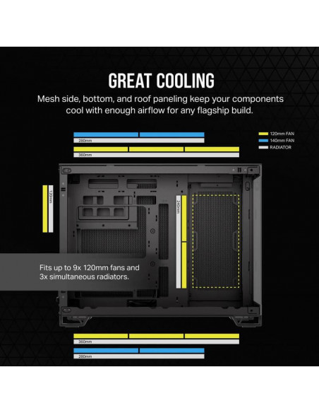 * **Excelente refrigeração:** Espaço para múltiplos ventiladores e radiadores para manter o seu sistema fresco.