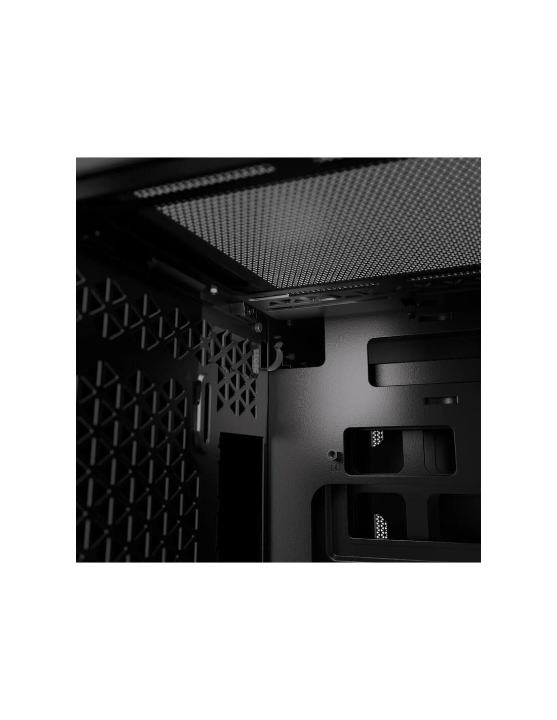 A Corsair 2500D Airflow destaca-se pela sua excelente capacidade de fluxo de ar, graças ao seu painel frontal em malha que garante a circulação eficiente do ar. A caixa suporta até 11 ventiladores de 120mm ou 6 de 140mm, assim como opções de montagem versáteis para radiadores AIO na parte frontal, superior, inferior e laterais.