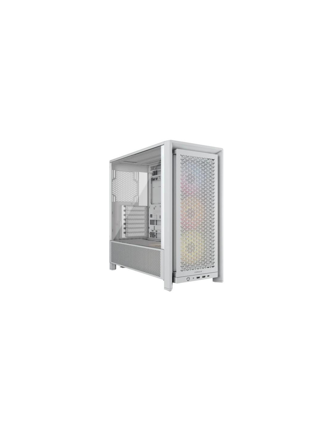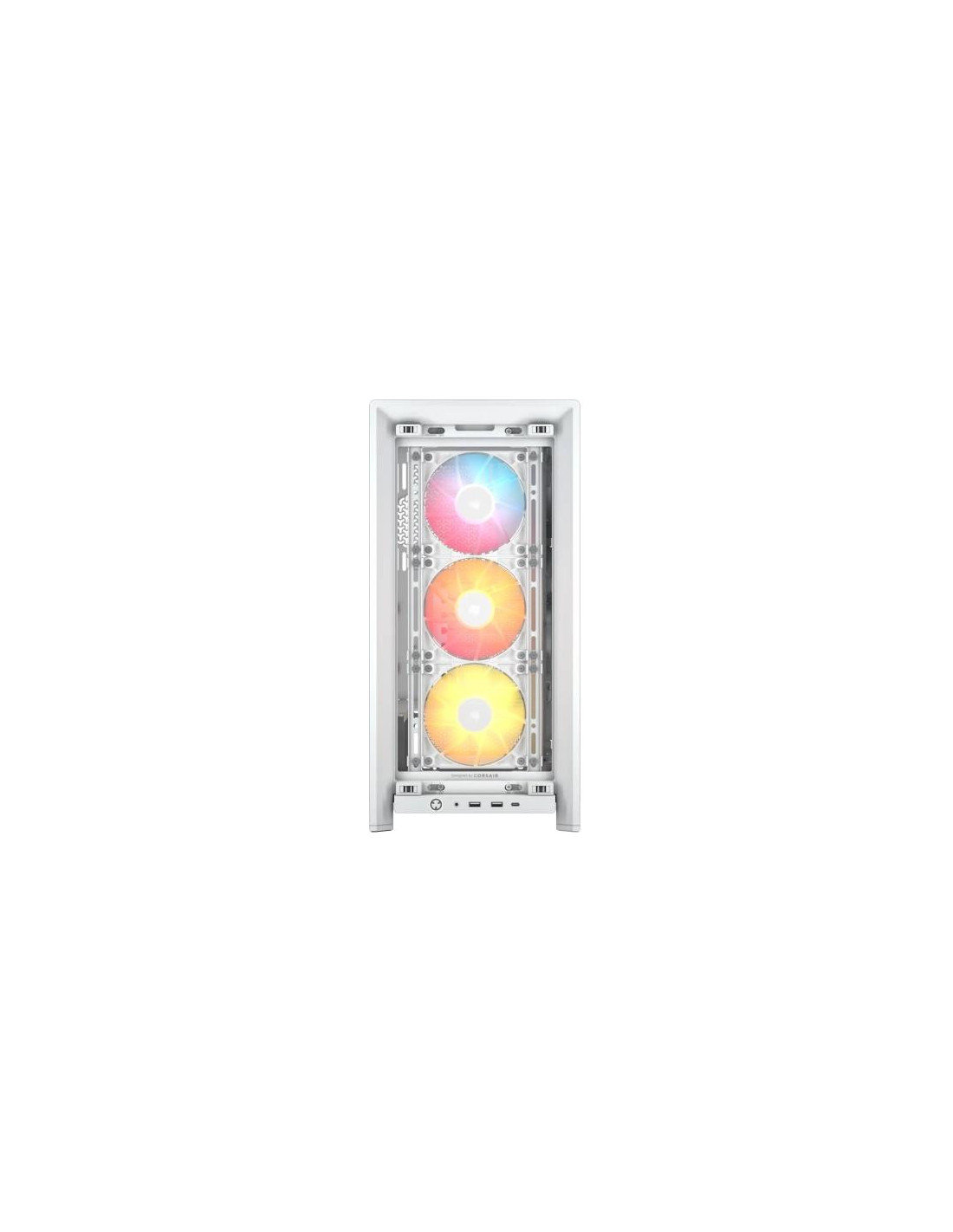 Caixa Corsair FRAME 4000D RS ARGB Midi Tower, na cor branca, com iluminação RGB integrada nos ventiladores. Design moderno e funcional, com excelente gestão de cabos e compatibilidade com vários tamanhos de placas-mãe. Ideal para construções de PCs de jogos ou de alto desempenho.