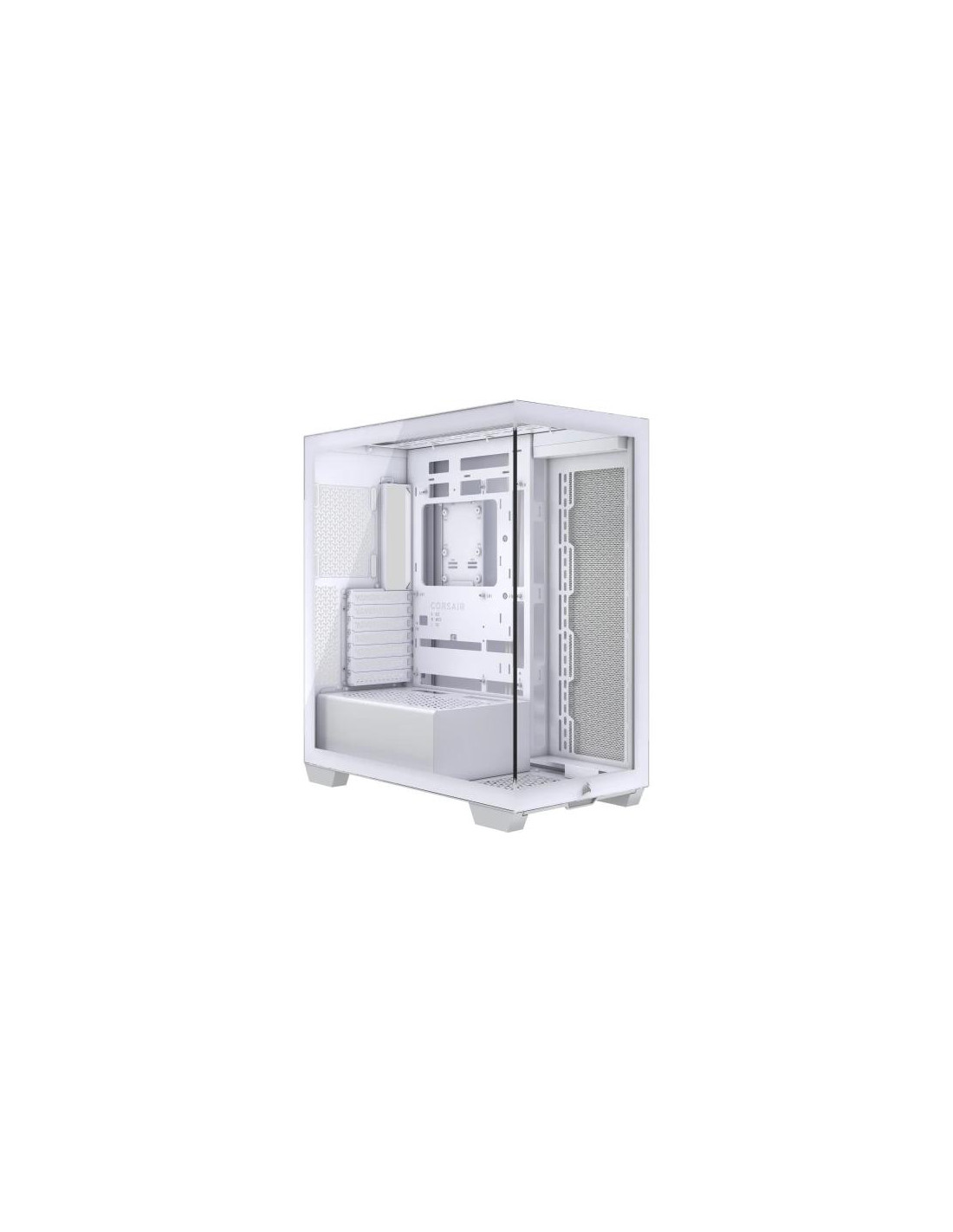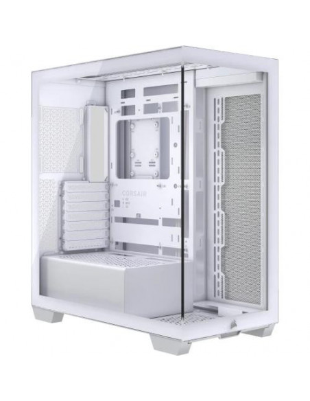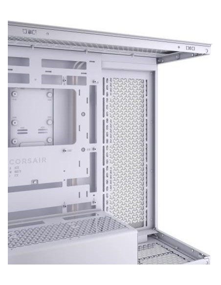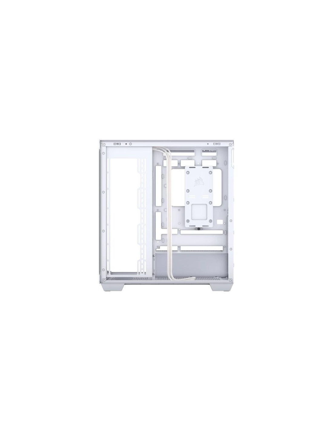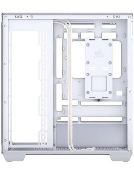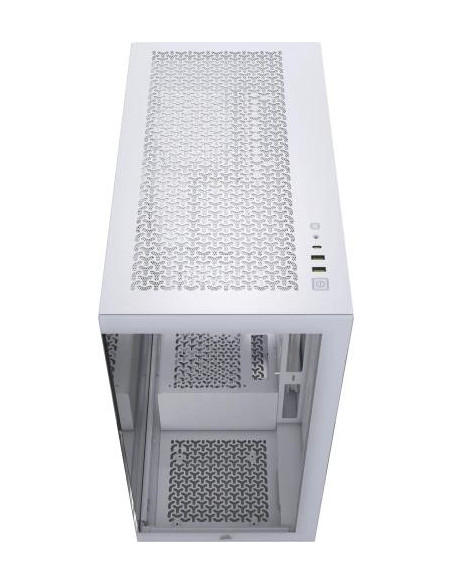 A Corsair 3500X é uma caixa Midi Tower branca, com painel lateral em vidro temperado, ideal para computadores de gaming. Oferece espaço para placas-mãe EATX, placas gráficas de até 41cm e sistemas de refrigeração líquida. Inclui espaço para múltiplas unidades de armazenamento e oferece excelente gestão de cabos. O painel frontal tem portas USB 3.2 Gen 1 e uma porta USB 3.2 Gen 2 tipo C.
