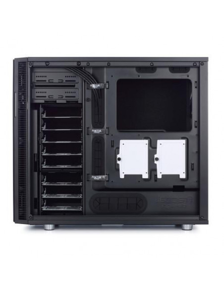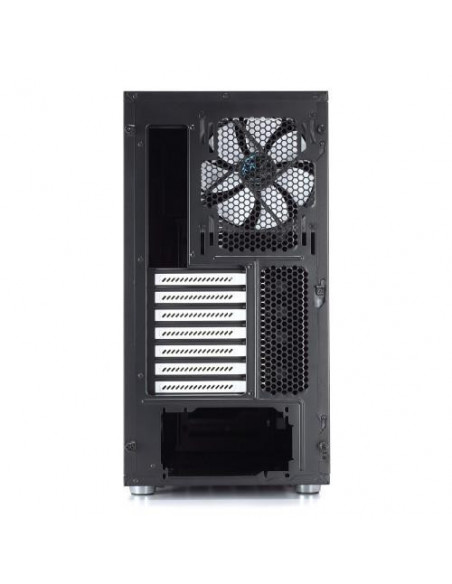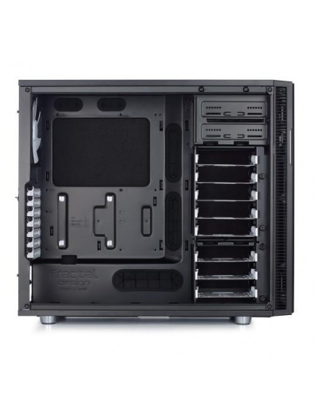 A Fractal Design Define R5 Black Pearl é uma caixa de computador Midi Tower, com o código de produto FD-CA-DEF-R5-BK, projetada para entusiastas de computadores que valorizam a qualidade e o desempenho.  Construída com materiais robustos e um design elegante, esta caixa oferece amplo espaço interno para componentes de alto desempenho, bem como excelente gestão de cabos para uma construção organizada e eficiente.  A sua compatibilidade com placas-mãe ATX, Micro-ATX e Mini-ITX, proporciona versatilidade para diferentes configurações.  Conta com 8 baias internas de 3.5" e 2 baias de 2.5" para armazenamento, além de 7 slots de expansão para placas gráficas e outras placas adicionais.  O sistema de gestão de cabos integrado facilita a organização dos fios, contribuindo para uma melhor circulação de ar e evitando sobreaquecimento. A caixa inclui um filtro anti-poeira e suporta coolers com altura máxima de 18 cm, placas gráficas com comprimento máximo de 44 cm e fontes de alimentação com comprimento máximo de 30 cm. Inclui ventiladores frontais e traseiros instalados (1x140 mm cada). Possui portas USB 3.2 Gen 1 (3.1 Gen 1) e USB 2.0 e conectores de áudio.  Dimensões: 232 x 531 x 462 mm. Peso: 10,7kg.
