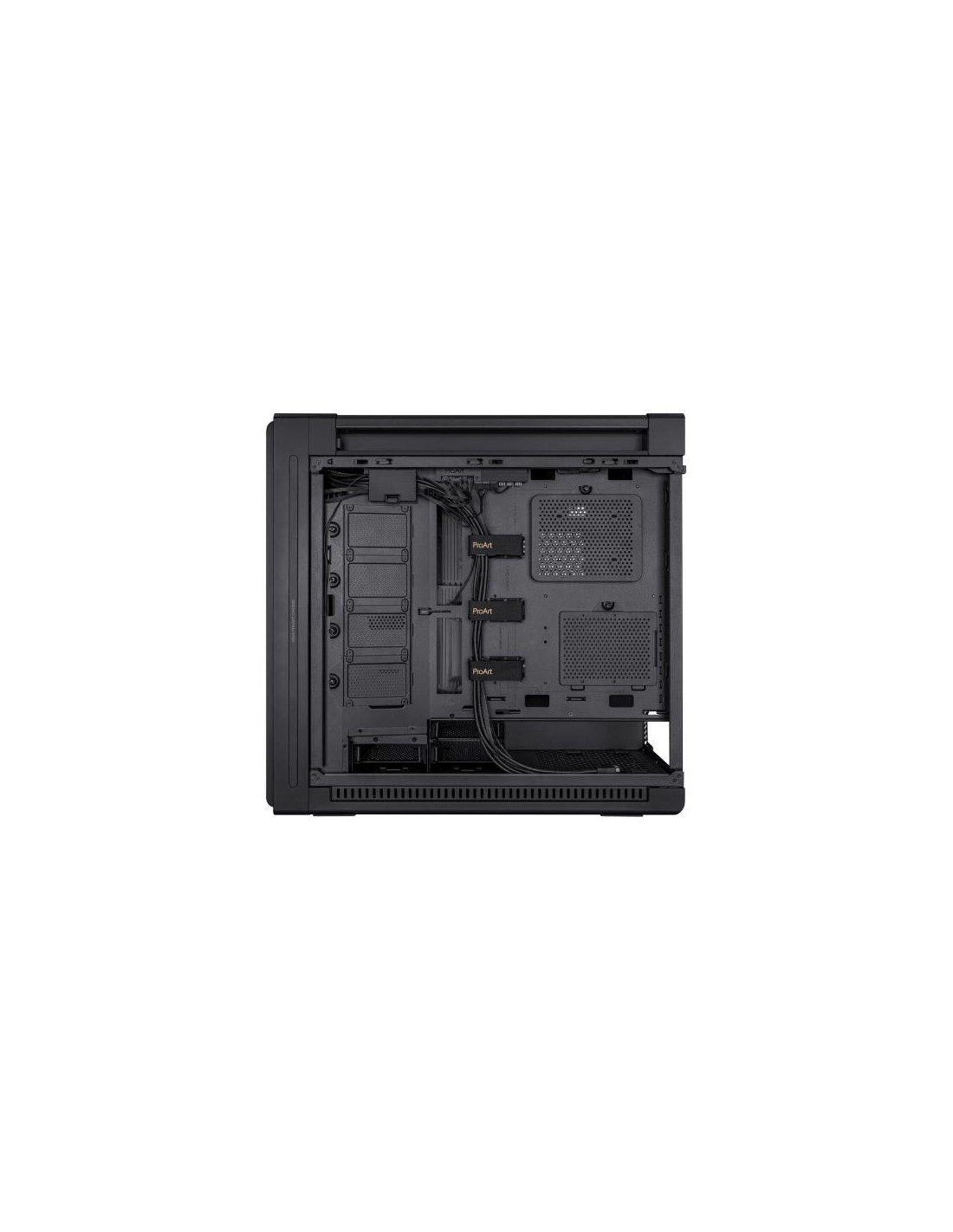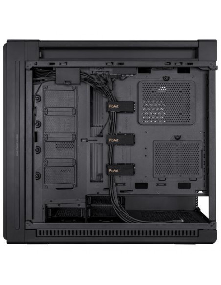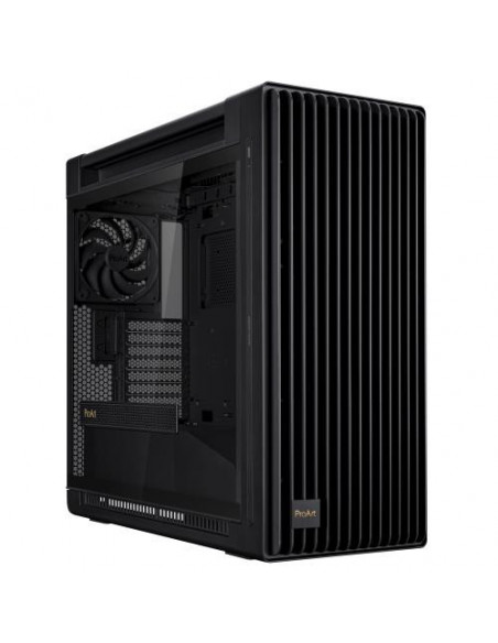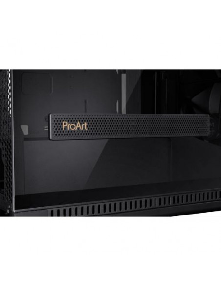 A caixa ASUS ProArt PA602 é uma torre Midi Tower com design elegante e funcional, ideal para sistemas de gama média a alta. Oferece amplo espaço interno para componentes de grandes dimensões, gestão de cabos eficiente e excelente fluxo de ar. Integra dois ventiladores de 200 mm na frente e um de 140 mm na traseira. Permite a instalação de radiadores para sistemas de refrigeração líquida. Inclui painel lateral em vidro temperado e múltiplas opções de conectividade.