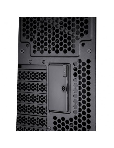 Outras características incluem: 4 baias de 2,5" e 4 baias de 3,5" para unidades de armazenamento, 8 slots de expansão, filtro anti-poeira para manter o interior limpo, botões de energia e reset facilmente acessíveis, e múltiplas portas na parte frontal da caixa, incluindo 2 USB 3.2 Gen 1 (3.1 Gen 1), 2 USB 2.0 e 1 USB 3.2 Gen 2 (3.1 Gen 2) tipo C. O controlo de velocidade dos ventiladores também está integrado.
