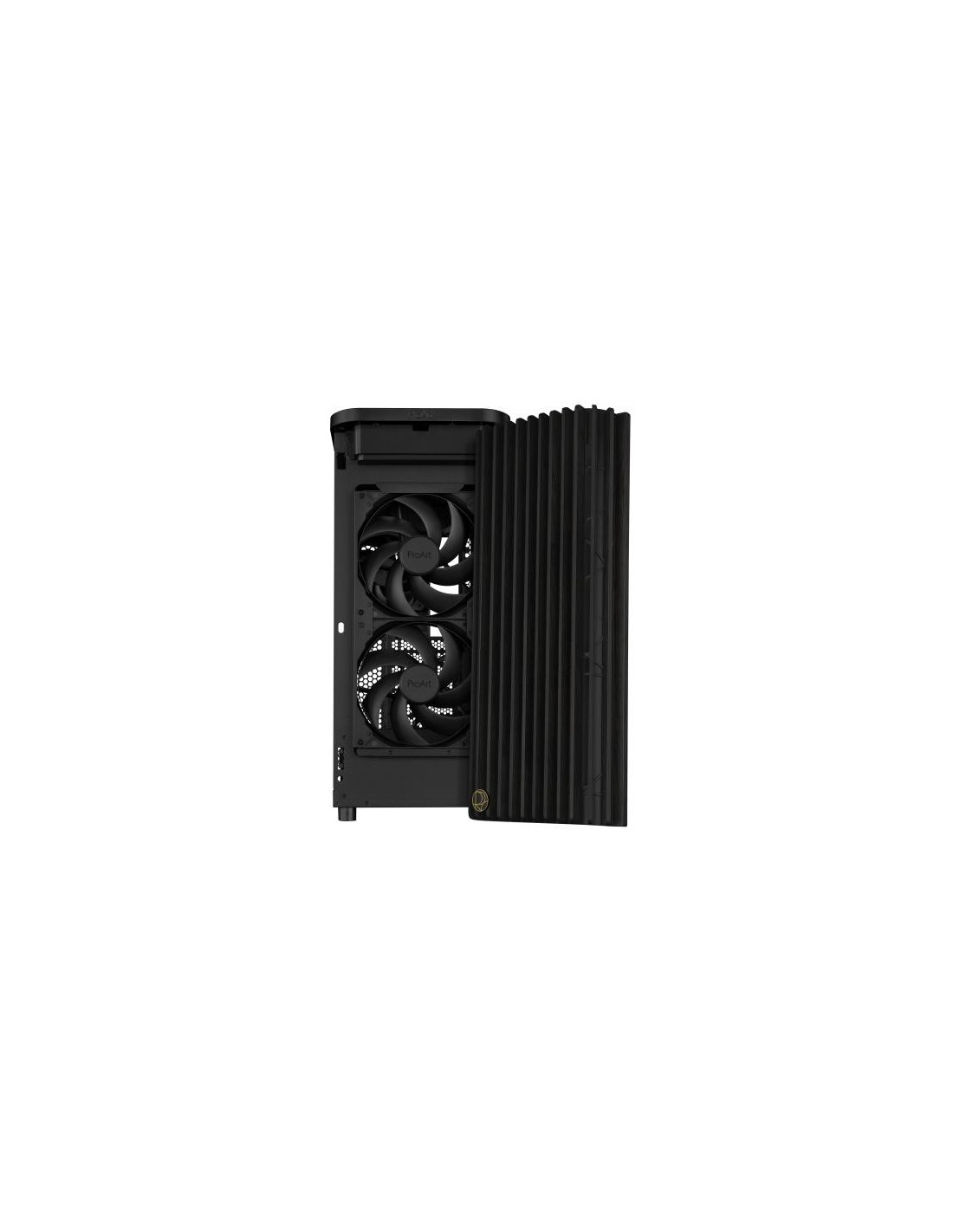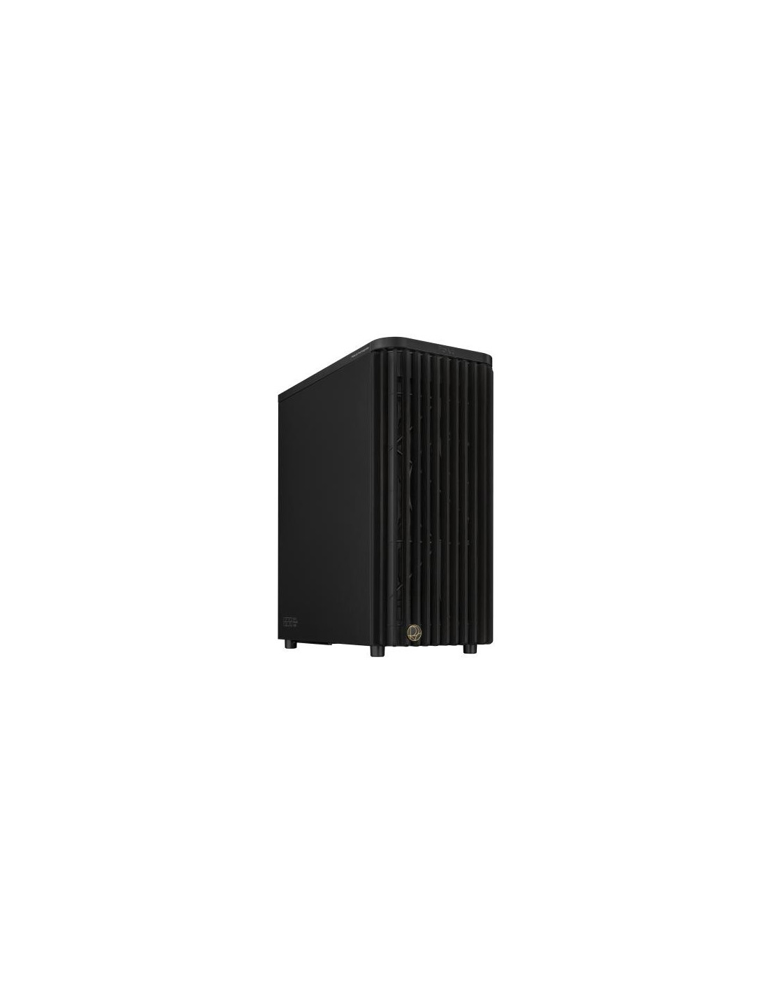 A caixa de computador ASUS ProArt PA401 Wood é uma torre de formato ATX, construída em metal, com um design elegante em preto. Inclui dois ventiladores frontais de 160mm, e suporta uma variedade de configurações de refrigeração. Oferece espaço amplo para componentes de alta performance, incluindo placas gráficas de grande dimensão. Possui painel frontal com portas USB 3.2 Gen 2 e USB 3.2 Gen 1, além de saída de áudio. Controle de velocidade PWM para os ventiladores.