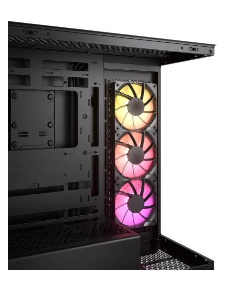 Esta caixa inclui três ventoinhas de 120 mm pré-instaladas na parte superior, garantindo um fluxo de ar adequado para manter os componentes a uma temperatura ótima. A Corsair 3500X ARGB também suporta a instalação de radiadores de arrefecimento líquido para um controlo ainda mais preciso da temperatura do sistema. A caixa oferece suporte para múltiplas ventoinhas adicionais, permitindo uma configuração personalizada de arrefecimento de acordo com as necessidades do sistema.