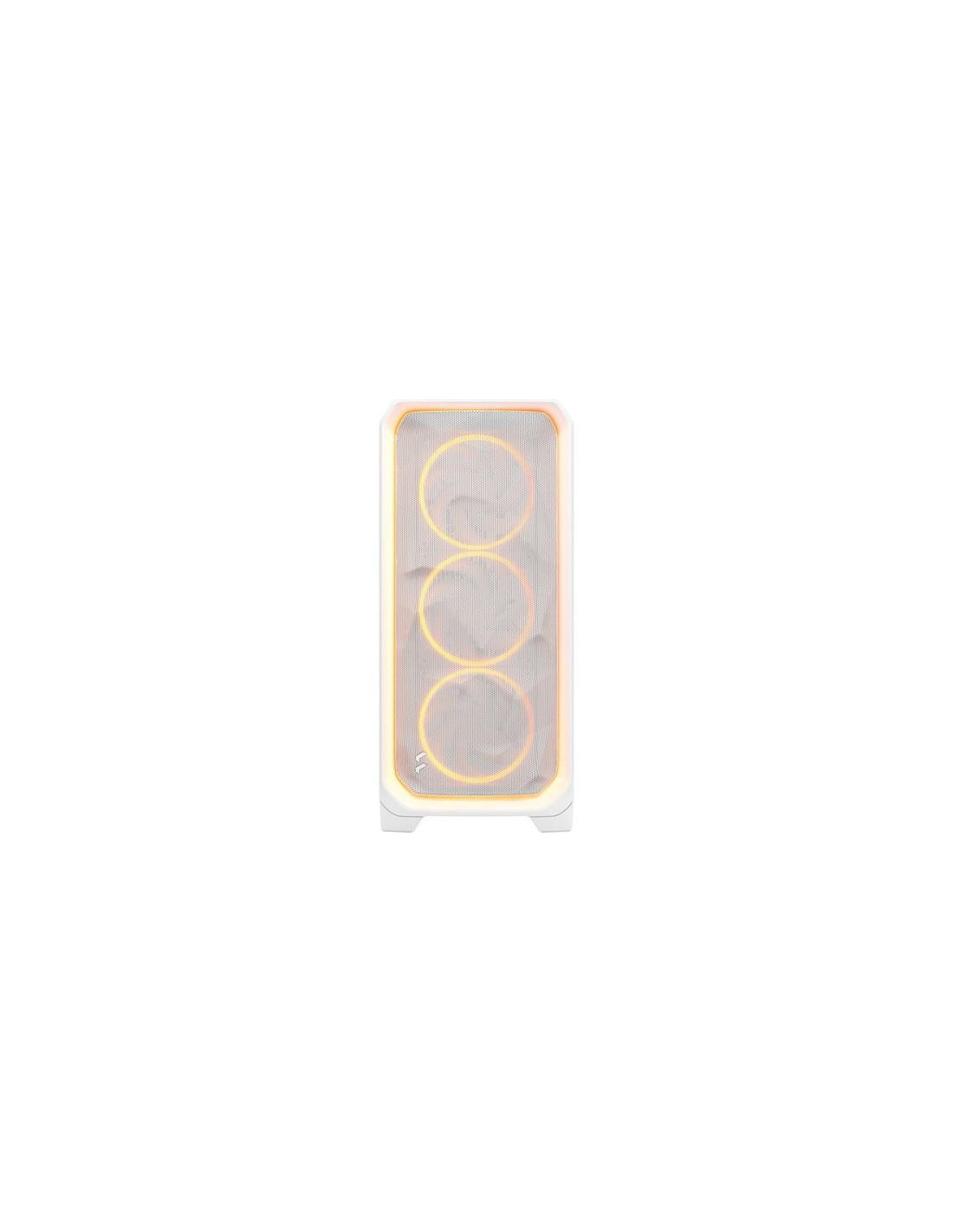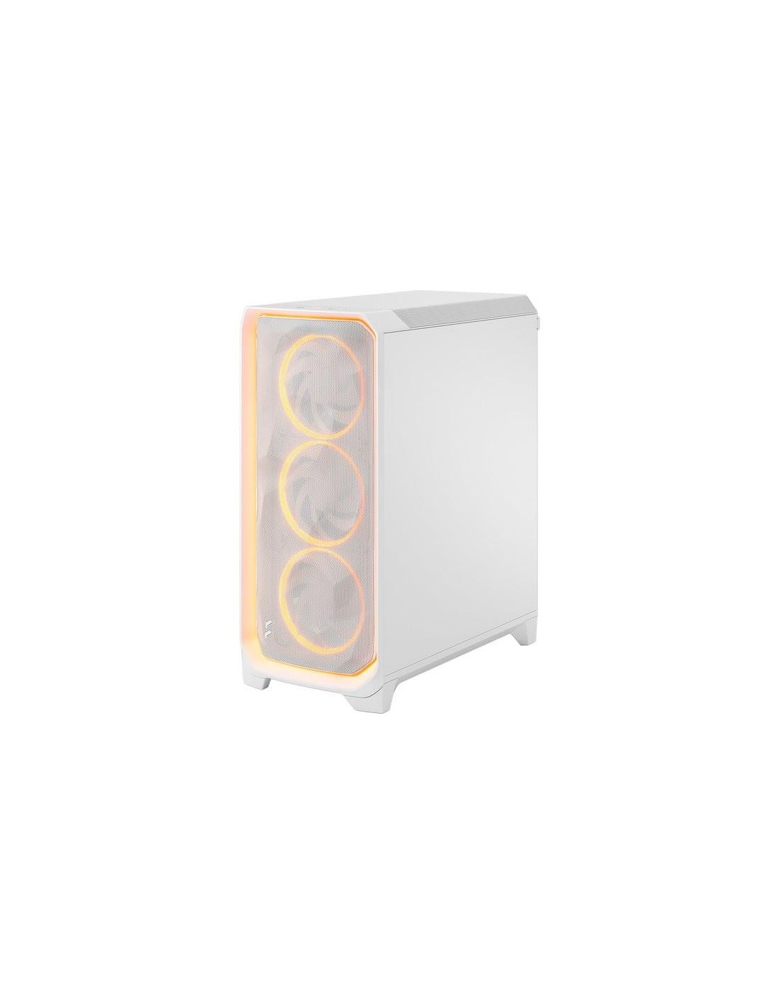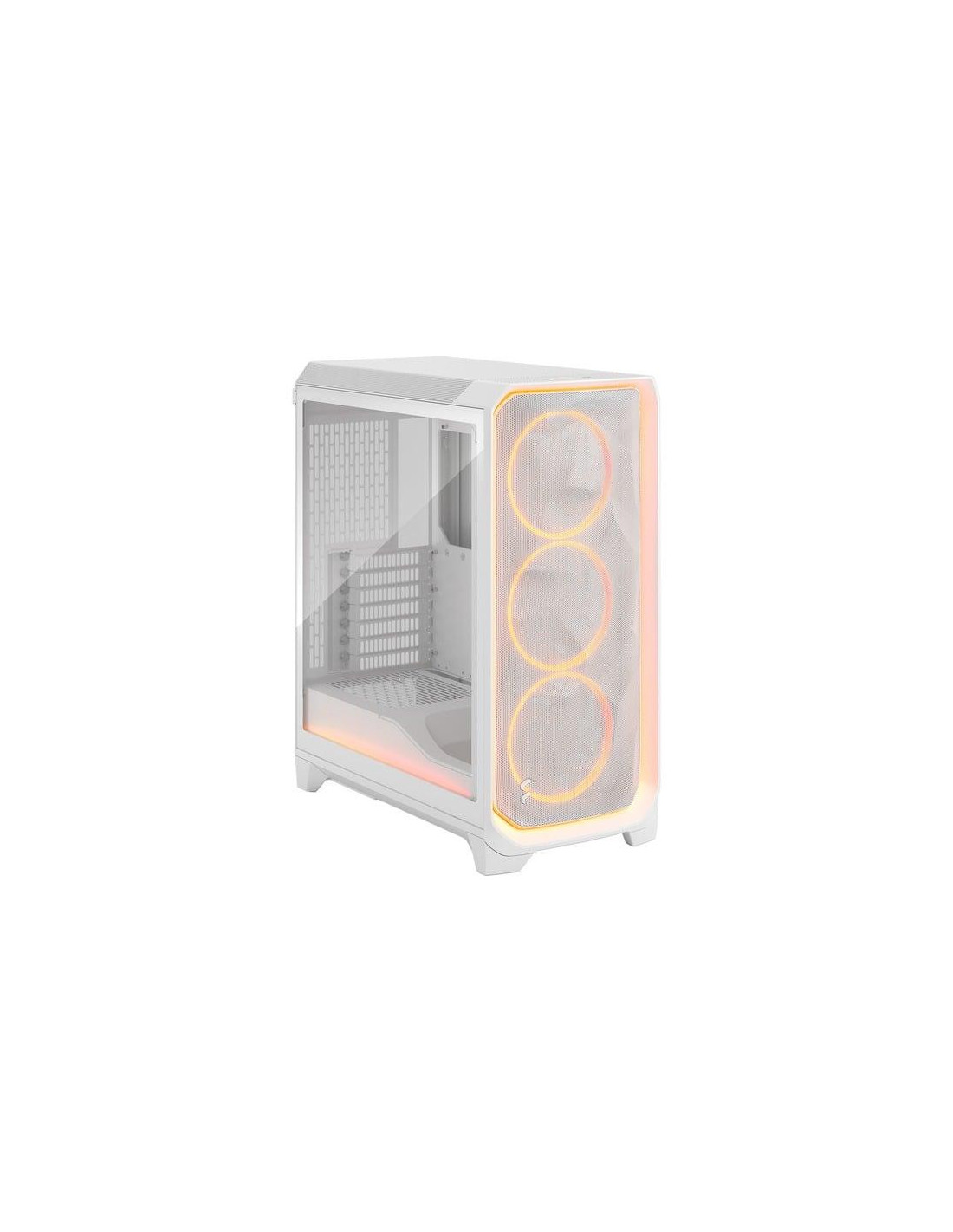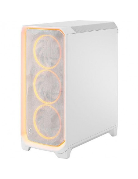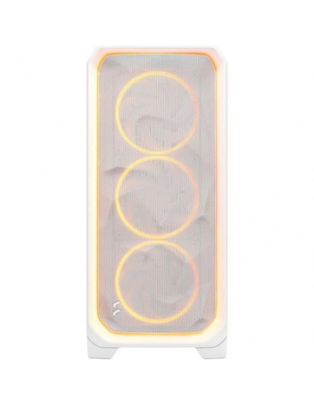 Caixa Fractal Design Meshify 3 Ambience Pro RGB, modelo FD-C-MES3A-05, em branco, com painel lateral em vidro temperado e iluminação RGB integrada. Design moderno e elegante com foco em excelente refrigeração. Facilidade de montagem e gestão de cabos. Iluminação RGB configurável via web.