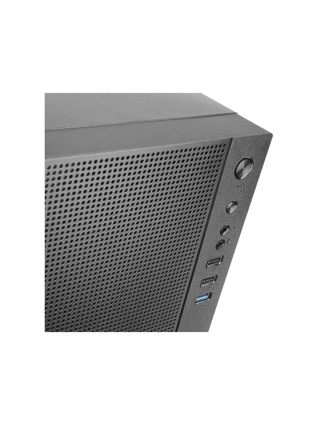 A caixa de PC Anima AC5500 é uma minitorre robusta e espaçosa, projetada para construir computadores com formato MicroATX. Inclui uma fonte de alimentação de 500W, eliminando a necessidade de adquirir uma separadamente, facilitando a montagem e poupando espaço. O design em preto confere um aspeto elegante e moderno.
