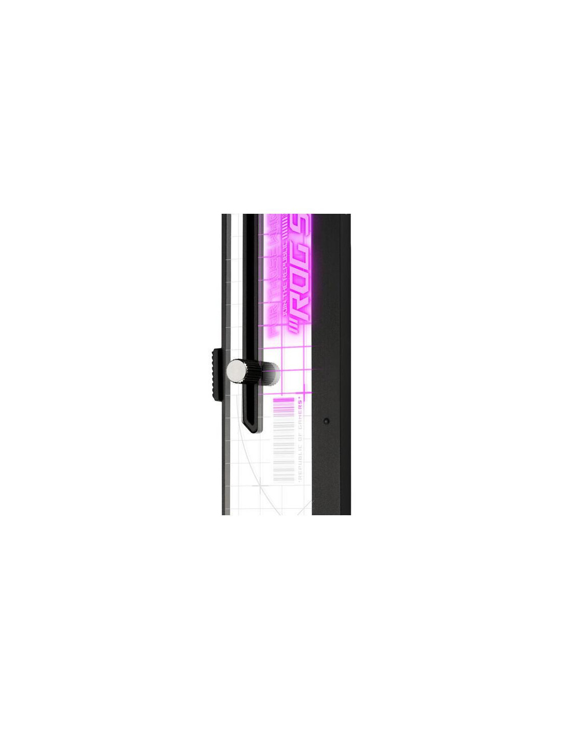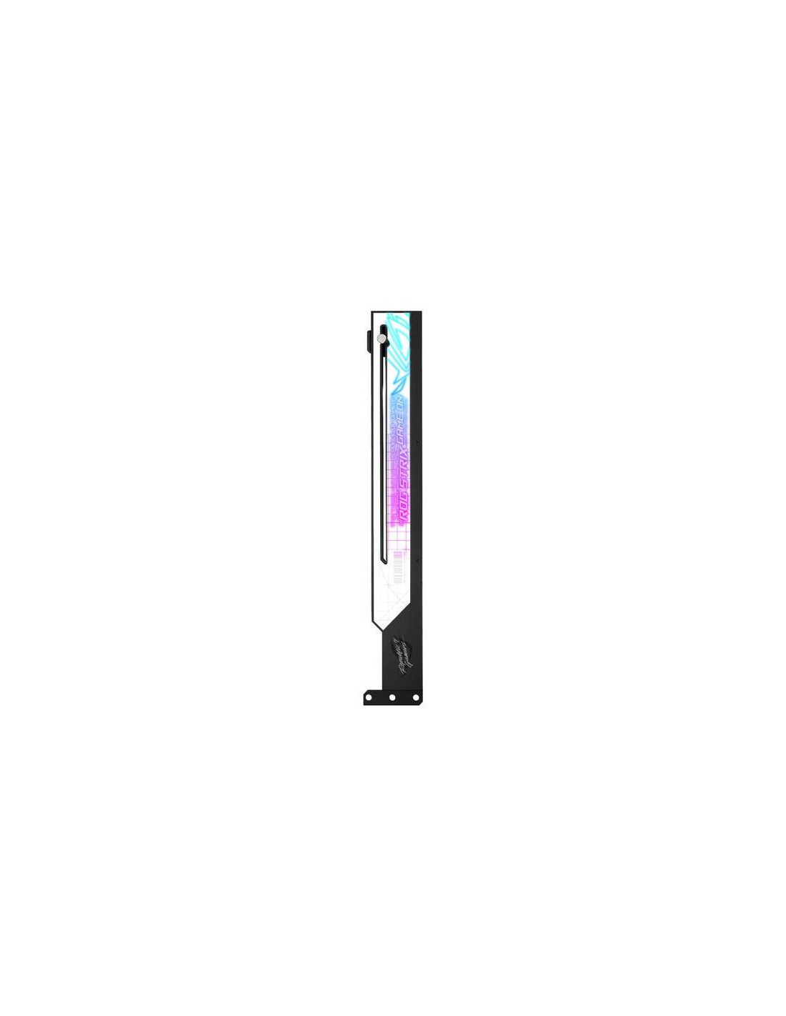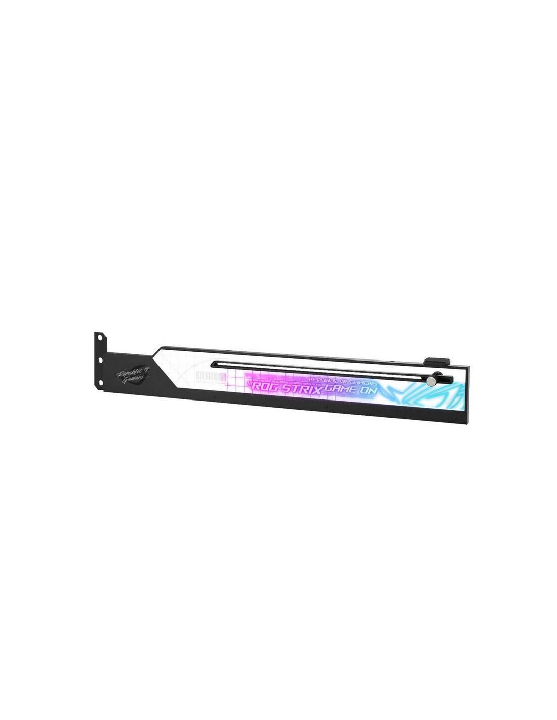 O suporte universal para placa gráfica ASUS ROG Strix oferece suporte seguro para placas gráficas pesadas, prevenindo danos e flexão. Com design elegante em preto e cinza, integra iluminação RGB configurável para personalizar a sua configuração.