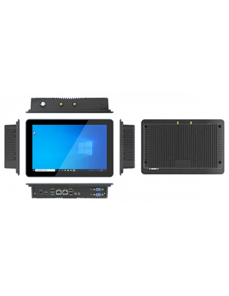 Computador industrial robusto, ideal para ambientes exigentes. Oferece um ecrã tátil de 10.1 polegadas com resolução de 1200x1920 pixels. Integra processador Intel Celeron N5100, 8GB de RAM e 128GB de armazenamento. Inclui diversas portas de comunicação, incluindo USB 3.0, RS232 e RJ45.