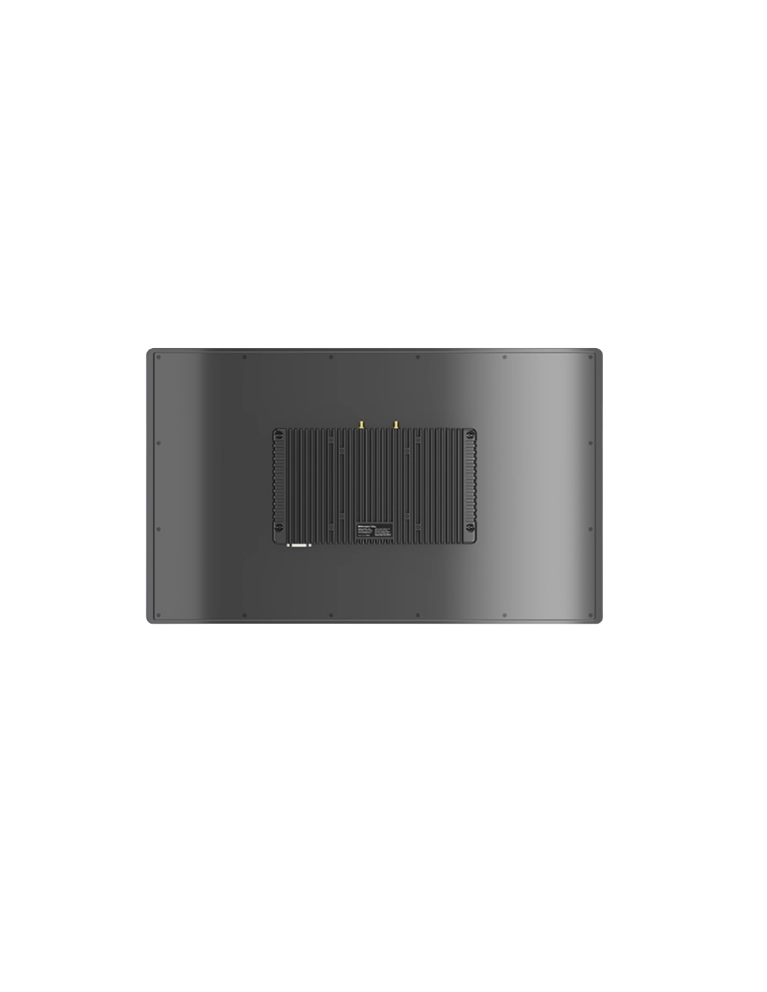 Este painel PC tem dimensões de 537.02 x 324.02 x 57.6mm e pesa 5.05Kg, sendo robusto e fácil de integrar em diferentes ambientes industriais. As opções de conectividade incluem 2x RJ45 (10/100/1000M), Dual Band Wi-Fi (Wi-Fi 6 opcional), Bluetooth 5.1 e 4G opcional, expandindo as possibilidades de comunicação e integração em rede. A temperatura de operação varia entre -20ºC e 60ºC, enquanto a temperatura de armazenamento varia entre -30ºC e 70ºC. A unidade pode operar com humidade de até 95% sem condensação.