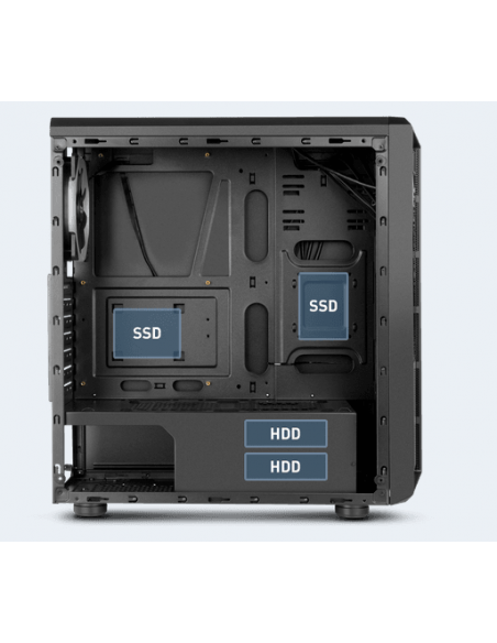 - Sistema de Arrefecimento (Opcional): Traseira: Suporta 1 x ventoinha 120 mm (1 x RGB incluída)