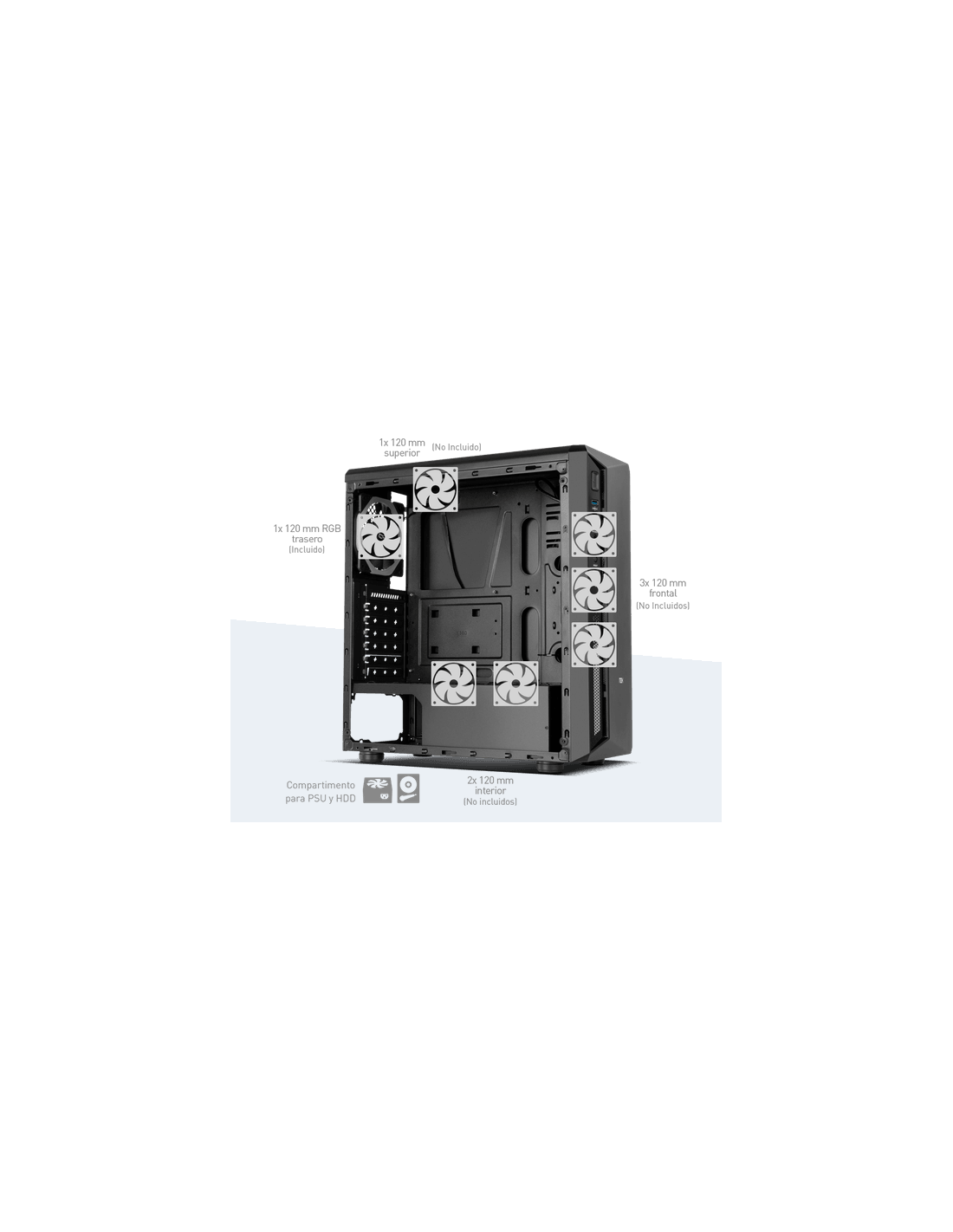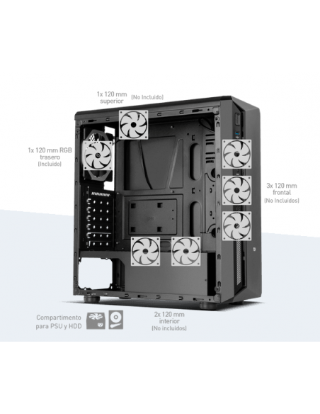 - Suporta 1 x ventoinha 120 mm (1 x RGB incluída)