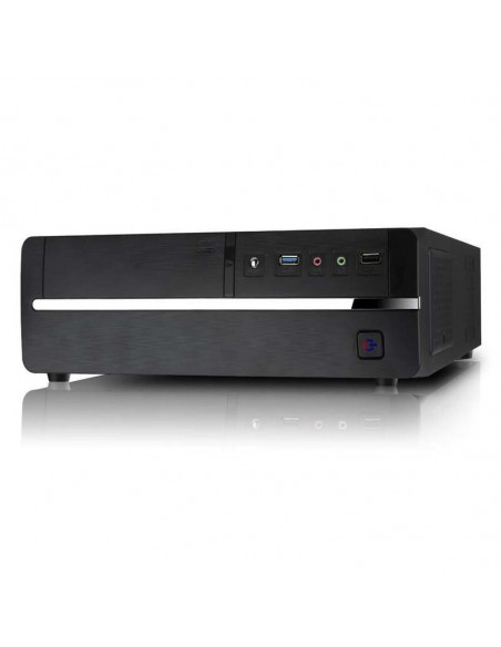 Para facilitar a conexão dos seus periféricos, a caixa inclui 1 porta USB 2.0 e 1 porta USB 3.0, para uma transferência de dados rápida e eficiente. A presença de entradas e saídas de áudio simplifica a conexão de auscultadores e outros dispositivos de áudio. O seu design com 4 ranhuras de expansão permite a adição de placas de expansão, para uma maior personalização e expansão do sistema.
