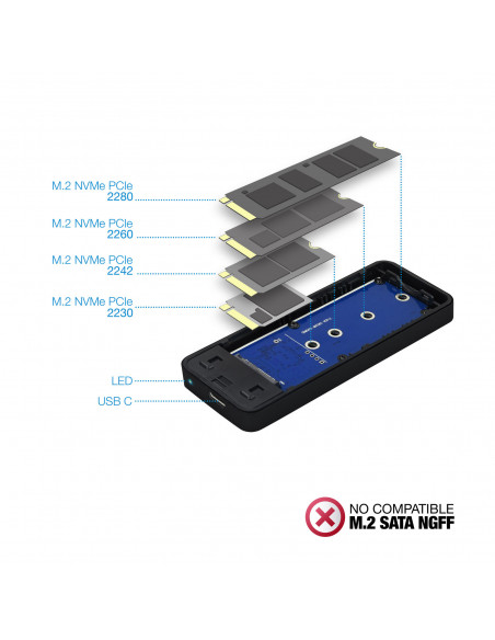 A caixa externa é compatível com qualquer SSD M.2 NVMe dentro das suas especificações. Verifique sempre a compatibilidade do seu SSD antes da utilização.