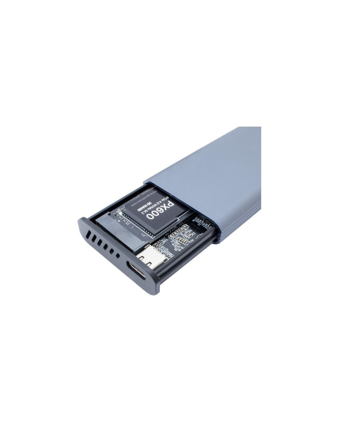 A caixa externa Coolbox para SSD M.2 NVMe e SATA oferece uma solução elegante e compacta para expandir o armazenamento. Fabricada em alumínio cinzento, protege o seu SSD contra impactos. Fácil instalação, sem necessidade de ferramentas. Ideal para portabilidade e uso em diversos ambientes.