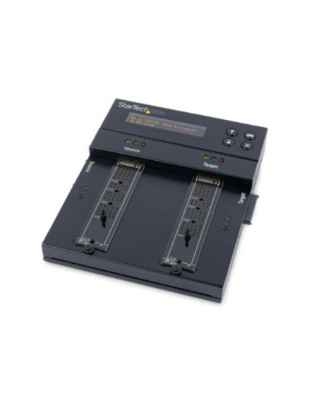 A caixa para discos rígidos StarTech SM2DUPE11 oferece uma solução versátil e robusta para a gestão de armazenamento.  Compatível com uma vasta gama de unidades, incluindo HDDs de 2,5 polegadas e 3,5 polegadas, bem como unidades M.2, SSD e NVMe, esta caixa permite a utilização flexível de diferentes tipos de discos. A sua construção em metal de alta qualidade, na cor preta, garante proteção e durabilidade, assegurando a segurança dos seus dados mesmo em ambientes exigentes.