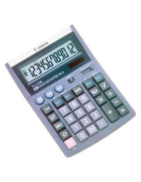 A calculadora de mesa Canon TX-1210E oferece cálculos diários com precisão e praticidade.  Com um visor de 12 dígitos, design compacto e alimentação dual (bateria/solar), é ideal para casa ou escritório.