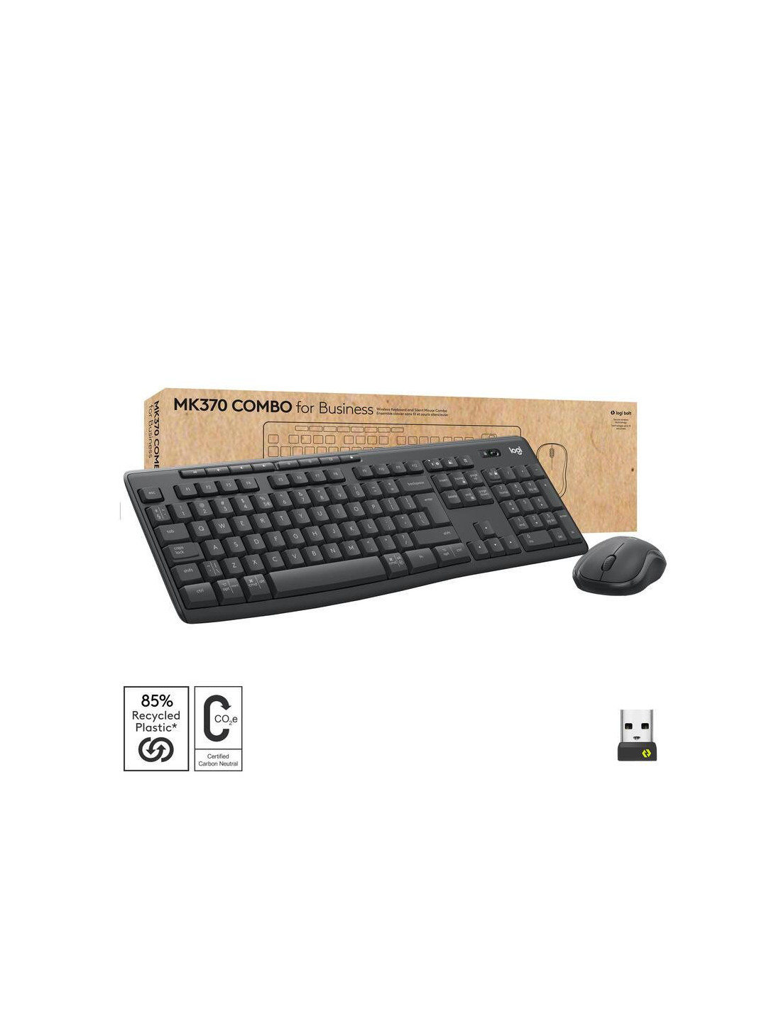 A altura do teclado é ajustável, permitindo personalizar a experiência para um melhor conforto ergonómico. A bateria é recarregável, e a longa duração contribui para o menor numero de interrupções no trabalho. Feito com materiais sustentáveis (85% de plástico reciclado pós-consumo) e certificado pelo Forest Stewardship Council (FSC), demonstra o compromisso da Logitech com a sustentabilidade ambiental. O software Logi Options+ permite personalizar ainda mais a experiência de uso do teclado e do rato.