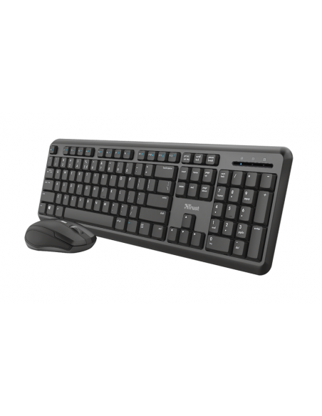 O Trust TKM-350 é um conjunto teclado e rato sem fios, projetado para oferecer conforto e eficiência em diversas tarefas. Este conjunto é ideal para quem procura uma solução prática e fiável para uso doméstico ou em escritório. A sua conectividade sem fios RF Wireless proporciona maior liberdade e mobilidade, eliminando a necessidade de cabos.
