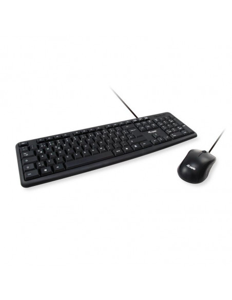 Kit teclado e rato com fio EQUIP Life, ideal para uso doméstico ou profissional. Oferece um teclado de 105 teclas com toque suave, e um rato óptico USB com 1000 DPI. Conectividade plug-and-play para fácil utilização.