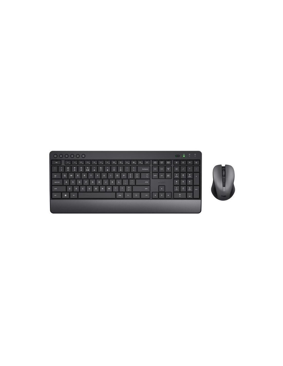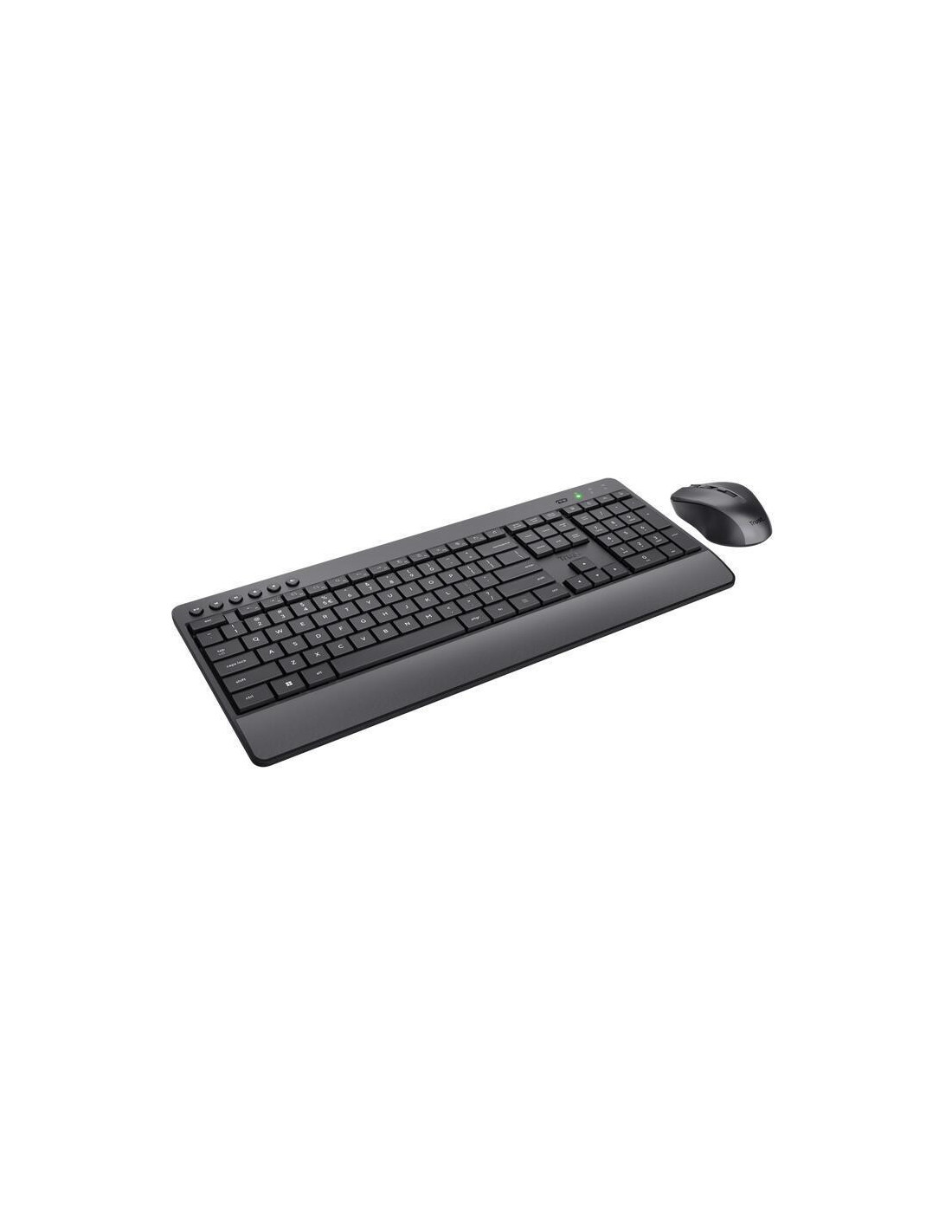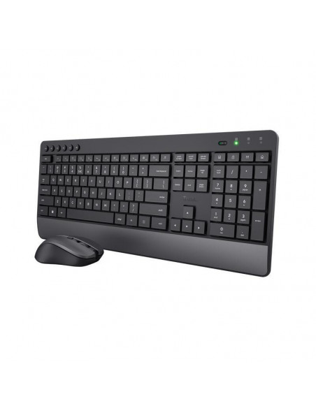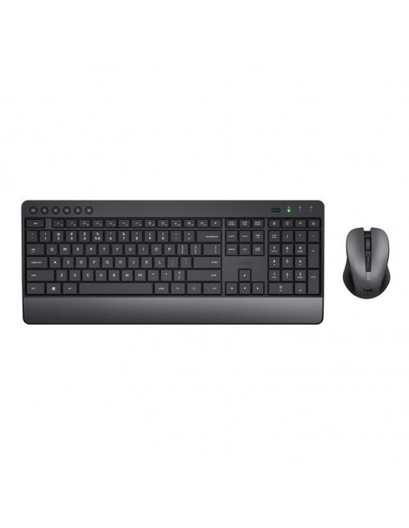 Kit teclado e rato sem fios TRUST Trezo, ideal para trabalhar em silêncio. Design confortável com descanso de pulso integrado. Fabricado com 85% de material reciclado. Baterias Duracell incluídas para até 48 meses de duração (teclado) e 12 meses (rato).