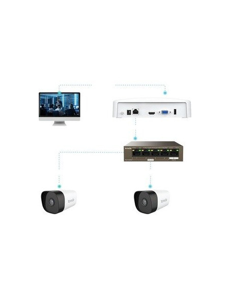 A estação de videovigilância Tenda N3L-4H é uma solução completa para monitorização e gravação de vídeo, ideal para aplicações domésticas ou comerciais. Com capacidade para 4 canais, este gravador de vídeo em rede (NVR) permite conectar até quatro câmaras de segurança, fornecendo uma visão abrangente do local monitorizado. A sua capacidade de armazenamento de 10 TB garante a gravação contínua de vídeo durante um período prolongado, sem a necessidade de substituição frequente de discos rígidos. A conectividade cablada garante uma transmissão estável e fiável do sinal de vídeo, livre de interferências sem fios. O suporte para os formatos de vídeo H.265 e H.264 garante uma alta qualidade de imagem com uma eficiente utilização do armazenamento. A interface HDMI permite visualizar as imagens gravadas em alta definição num monitor ou televisão. A gestão remota facilita a monitorização e a configuração do sistema a partir de qualquer localização com acesso à internet. A estação é compatível com câmaras de segurança com uma resolução máxima de 8MP, a 30 fps, proporcionando imagens nítidas e detalhadas. Para complementar a sua versatilidade, o NVR inclui portas USB para ligação de periféricos adicionais, como pen drives ou discos externos. O produto cumpre os requisitos da certificação RoHS, garantindo um impacto ambiental reduzido. Com a Tenda N3L-4H, pode construir um sistema de videovigilância completo e eficiente, que garante a sua segurança e tranquilidade.