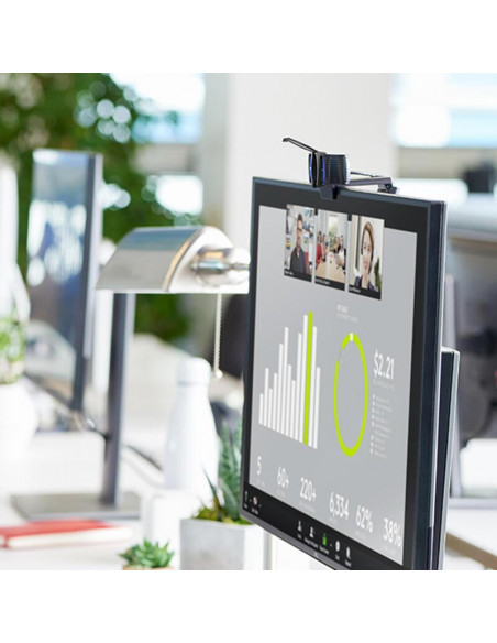 Para um som cristalino, a C920s HD Pro integra dois microfones que captam o áudio de forma clara e precisa, reduzindo ruídos de fundo e assegurando que a sua voz seja ouvida com perfeição, mesmo em ambientes ruidosos. O campo de visão de 78 graus permite que enquadre facilmente várias pessoas numa chamada de vídeo.