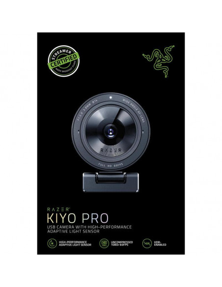 A Razer Kiyo Pro é uma câmara web concebida para oferecer uma experiência de vídeo de alta qualidade, perfeita para streaming, videoconferências e comunicação profissional. Com uma resolução impressionante de 1920 x 1080 pixels a 60 quadros por segundo (fps), a Kiyo Pro proporciona imagens nítidas, fluidas e detalhadas, mesmo em ambientes com pouca luz. O sensor CMOS de 2,1 MP capta imagens ricas e realistas, com cores vibrantes e precisão de detalhes.
