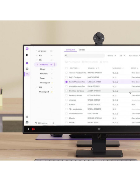 A câmara integra um microfone de alta qualidade com um alcance de 1,22 metros, garantindo uma captação de áudio clara e nítida, mesmo em ambientes ligeiramente ruidosos. O campo de visão de 70° permite abranger uma área ampla, ideal para chamadas em grupo. Para preservar a sua privacidade, a Brio 305 dispõe de uma tampa de obturador integrada que permite bloquear a lente quando não estiver em utilização.