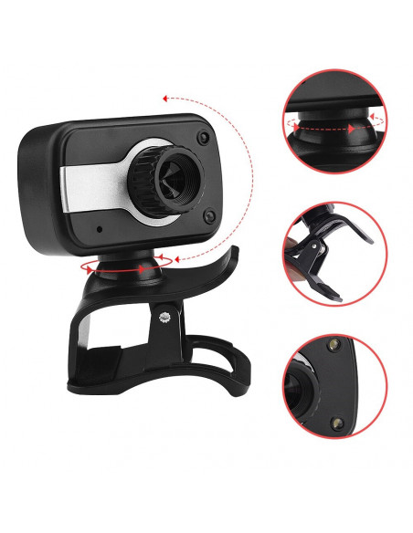 WebCam com resolução 640x480 (300Kpixel) com suporte para fixar no monitor e microfone. Iluminação LED, controlada por interruptor independente.
