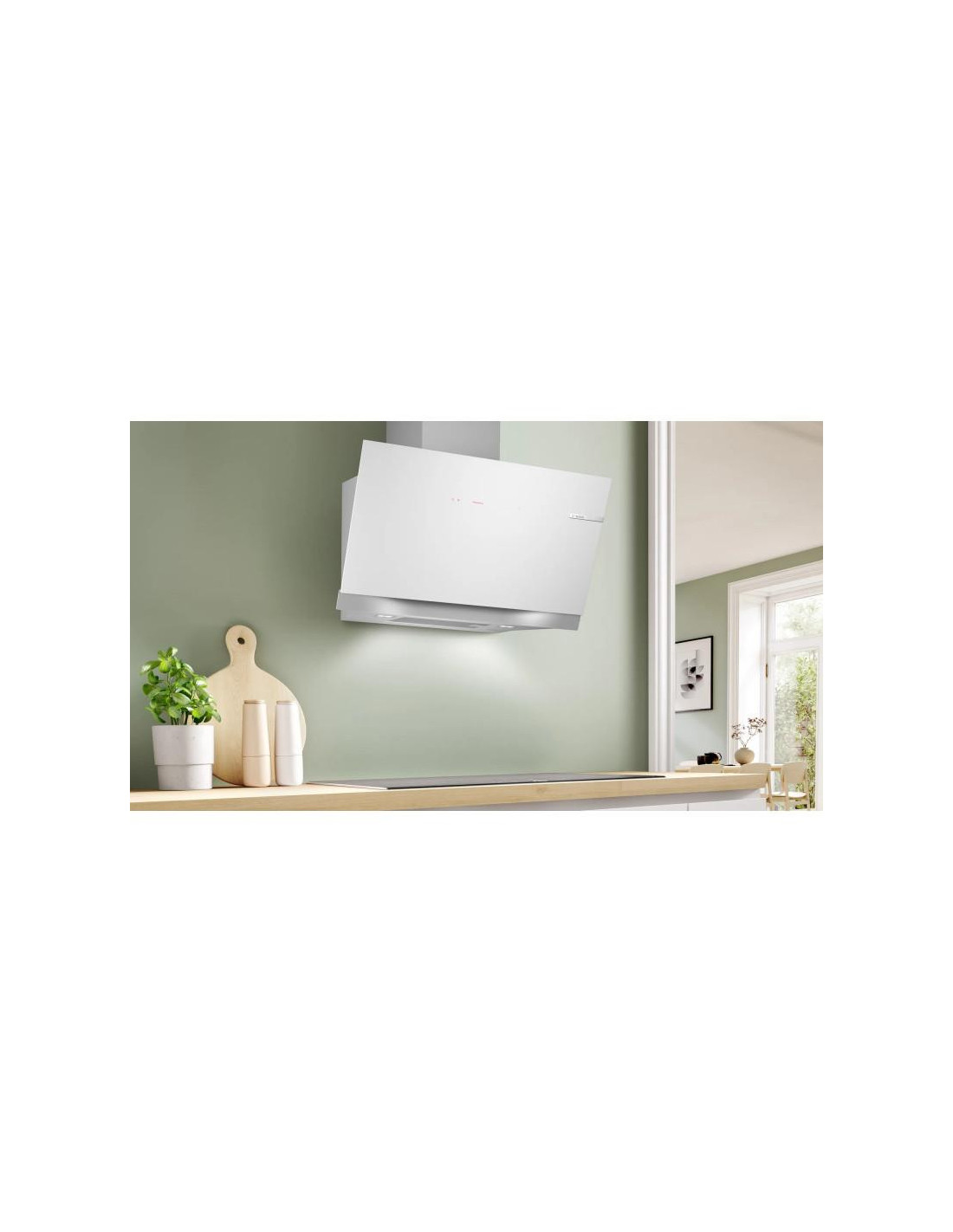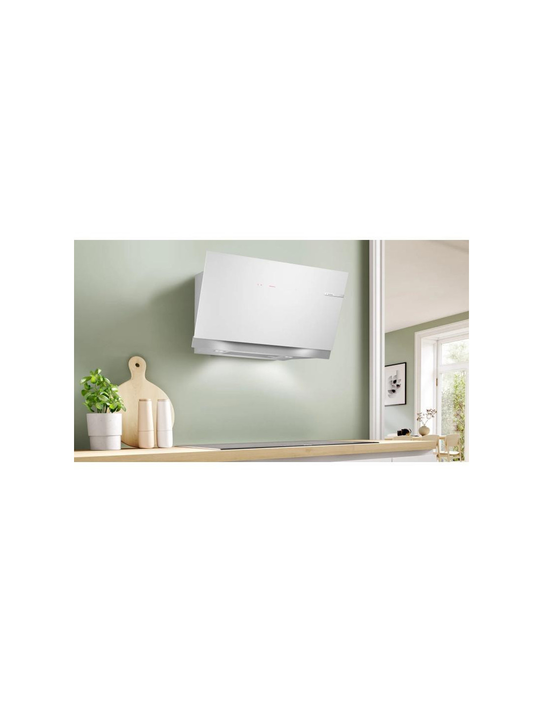 Bosch Serie 8 DWK91LT20. Potência máxima de extração: 441 m³/h, Tipo de extração: Conduzido/recirculante, Classe Eficiência Dinâmica Fluídos: A. Tipo: Montado na parede, Cor do produto: Branco, Material do corpo do produto: Vidro. Tipo de filtro de gordura: Aço inoxidável. Número de lâmpadas: 2 lâmpada(s), Tipo da lâmpada: LED, Iluminação: 422 lx. Classe de eficiência energética: A+, Consumo de energia anual: 39 kWh, Escala de eficiência energética: A+++ a D ;