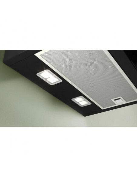Bosch Serie 4 DWK87FN60. Potência máxima de extração: 431 m³/h, Tipo de extração: Conduzido/recirculante, Classe Eficiência Dinâmica Fluídos: A. Tipo: Montado na parede, Cor do produto: Preto, Material do corpo do produto: Vidro. Tipo de filtro de gordura: Alumínio, Número de filtros: 2 unidade(s). Potência das lâmpadas: 3 W, Número de lâmpadas: 2 lâmpada(s), Tipo da lâmpada: LED. Classe de eficiência energética: A+, Consumo de energia anual: 31,7 kWh, Escala de eficiência energética: A+++ a D