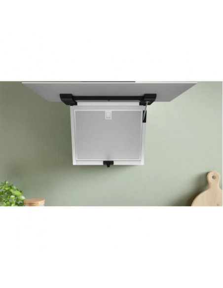 Bosch DWK67FN20. Potência máxima de extração: 431 m³/h, Tipo de extração: Conduzido/recirculante, Classe Eficiência Dinâmica Fluídos: A. Tipo: Montado na parede, Cor do produto: Branco, Material do corpo do produto: Vidro. Tipo de filtro de gordura: Alumínio, Número de filtros: 2 unidade(s). Número de lâmpadas: 2 lâmpada(s), Tipo da lâmpada: LED, Iluminação: 502 lx. Classe de eficiência energética: A+, Consumo de energia anual: 32 kWh, Escala de eficiência energética: A+++ a D