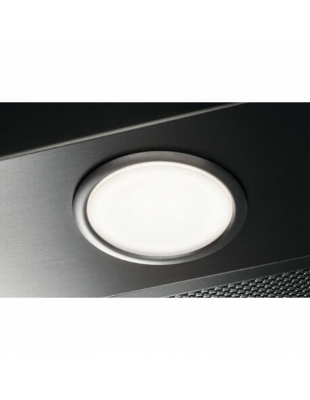 Electrolux LFT419X. Potência máxima de extracção: 600 m³/h, Tipo de extracção: Conduzido/recirculante, Classe Eficiência Dinâmica Fluídos: D. Modelo: Montado na parede, Cor da caixa: Inox, Potência das lâmpadas: 5 W. Tipo de filtro de gordura: Alumínio, Número de filtros: 3 peça(s). Classe de eficiência energética: C, Potência do motor: 145 W, Consumo de energia anual: 96 kWh. Largura do produto: 898 mm, Profundidade da Unidade: 450 mm, Altura da Unidade: 678 mm