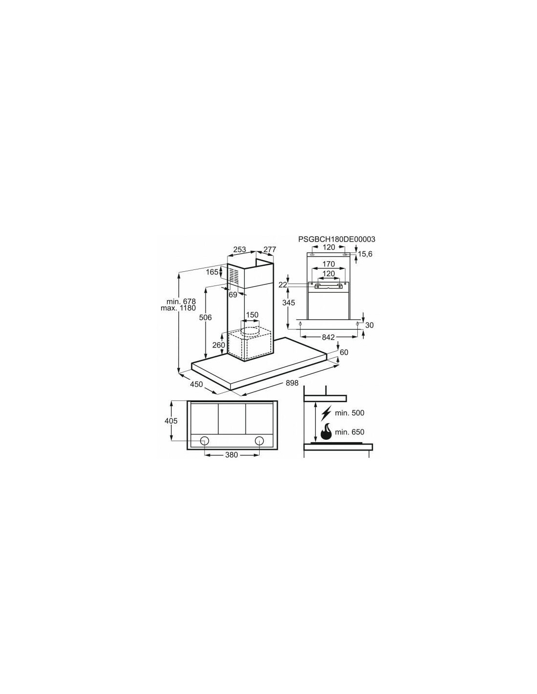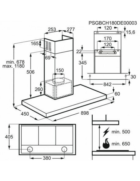 - Distância mínima do hob eléctrico: 50 cm