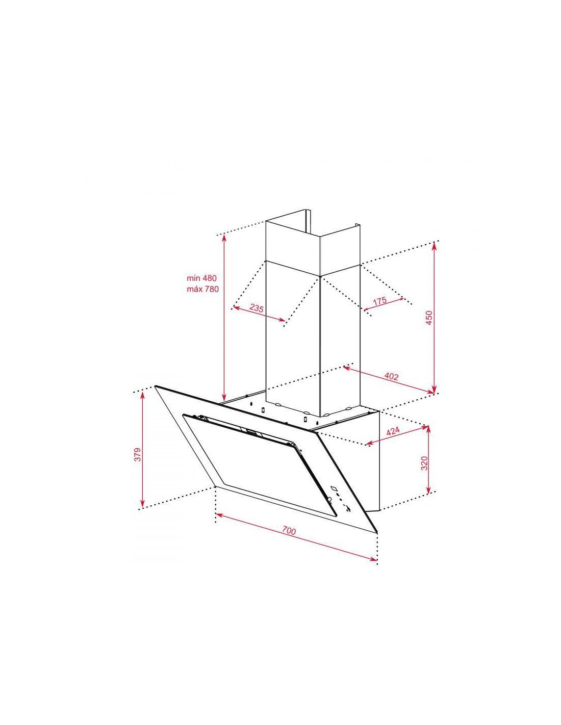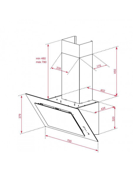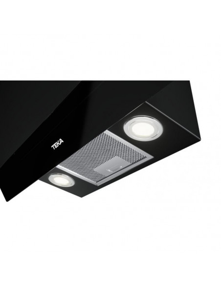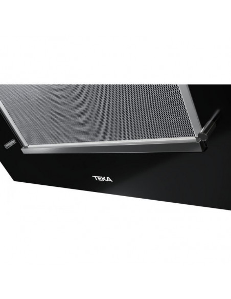 Teka DVT 78660 TBS. Potência máxima de extração: 698 m³/h, Tipo de extração: Conduzido/recirculante, Classe Eficiência Dinâmica Fluídos: A. Tipo: Montado na parede, Cor do produto: Preto, Potência das lâmpadas: 2 W. Tipo de filtro de gordura: Alumínio. Classe de eficiência energética: A+, Potência do motor: 280 W, Consumo de energia anual: 39 kWh. Comprimento: 700 mm, Largura: 412 mm, Altura (mín.): 85,9 cm ;