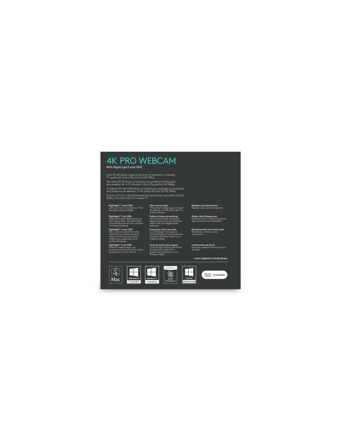 Logitech Webcam Brio Reslolucion 4k 90º Vision , Zoom Digital 5x, Enfoque Automatico