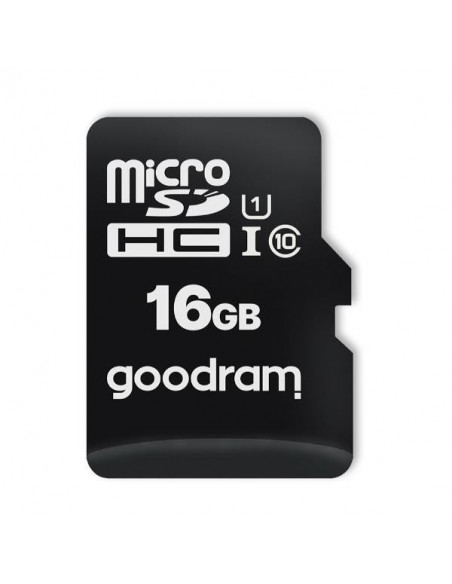 Cartão microSD Goodram M1AA com 16GB de capacidade, classe 10 e suporte UHS-I. Ideal para câmaras, smartphones e outros dispositivos móveis.