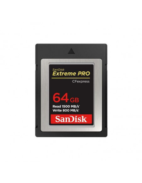 O cartão Sandisk Extreme Pro CFexpress de 64GB oferece velocidades de leitura de até 1500 MB/s e de escrita de até 800 MB/s. Ideal para fotógrafos e videógrafos profissionais que precisam de alta performance.