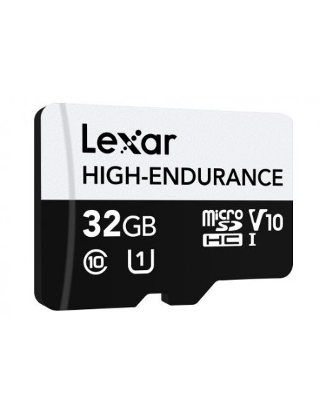 Lexar High-Endurance. Capacidad: 32 GB, Tipo de tarjeta flash: MicroSDHC, Clase de memoria flash: Clase 10, Tipo de memoria interna: UHS-I, Clase de velocidad UHS: Class 1 (U1), Clase de velocidad de vídeo: V10